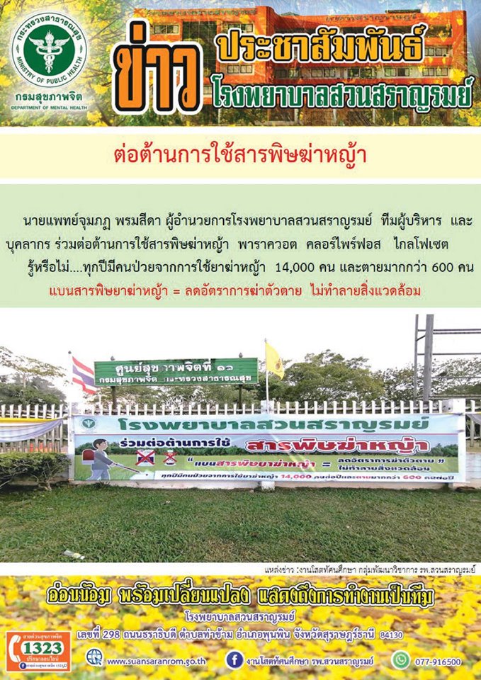 โรงพยาบาลสวนสราญรมย์ขอเป็นส่วนหนึ่งในการร่วมต่อต้านการใช้สารพิษฆ่าหญ้า ...