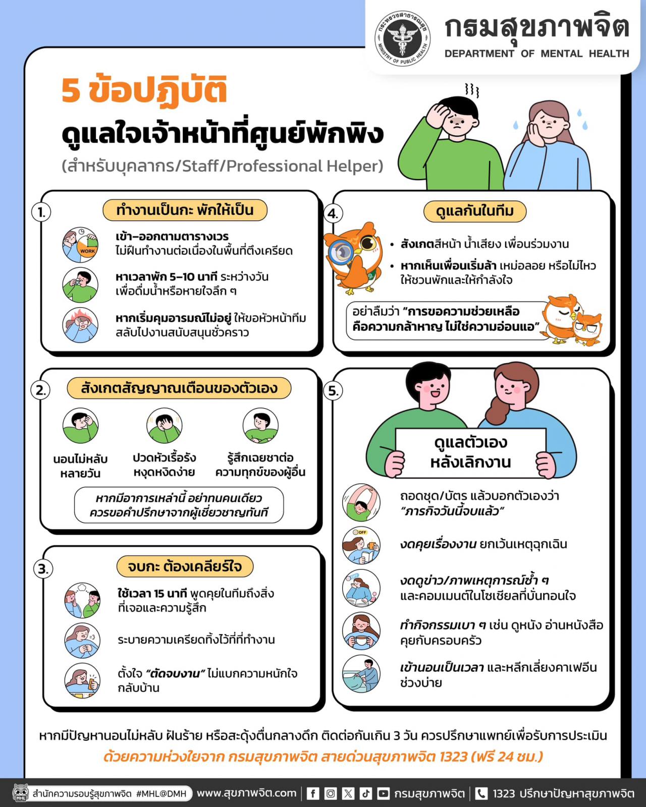 5 ข้อปฏิบัติ ดูแลใจเจ้าหน้าที่ศูนย์พักพิง