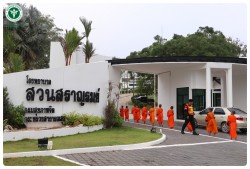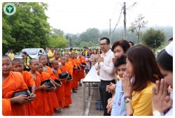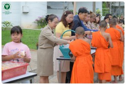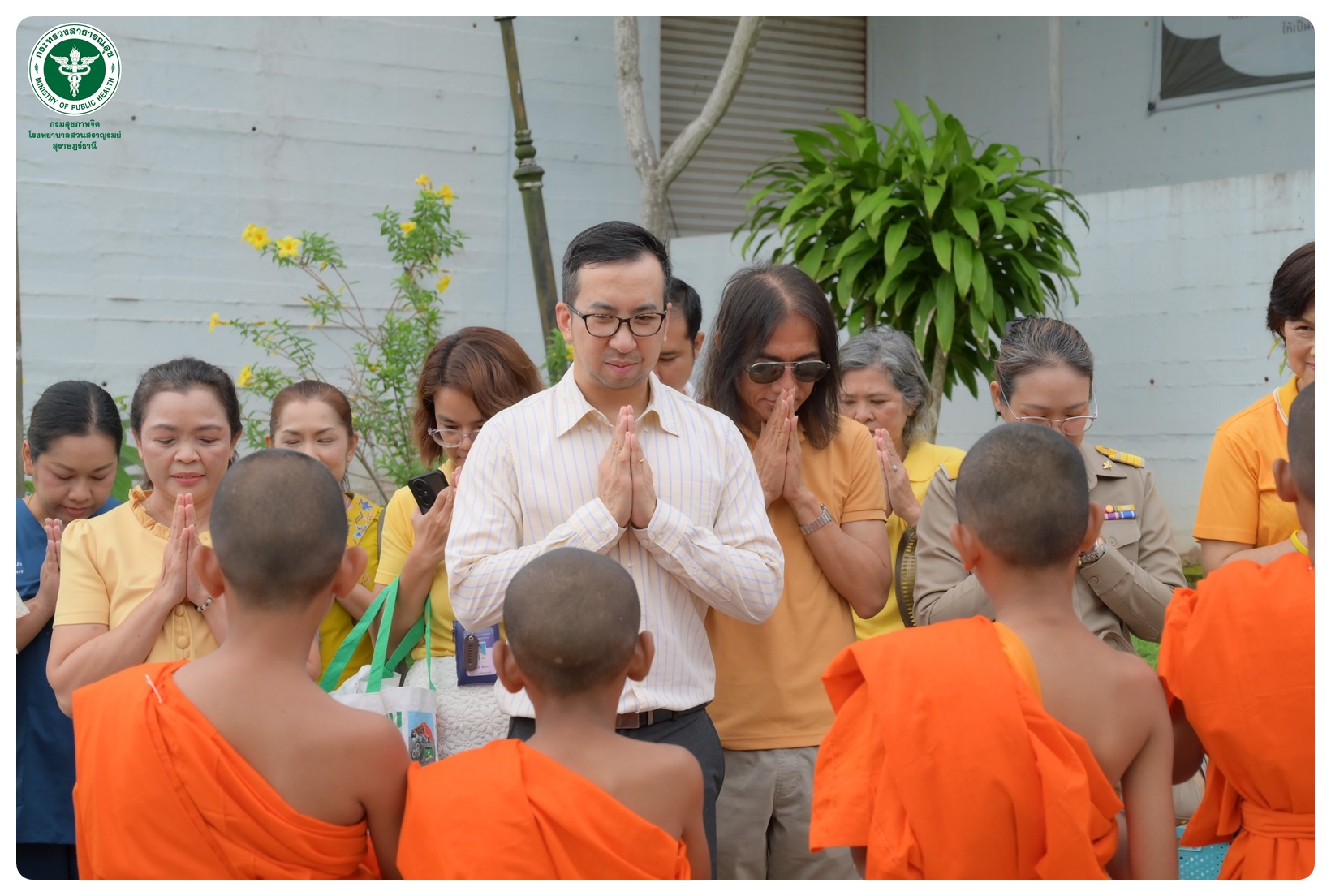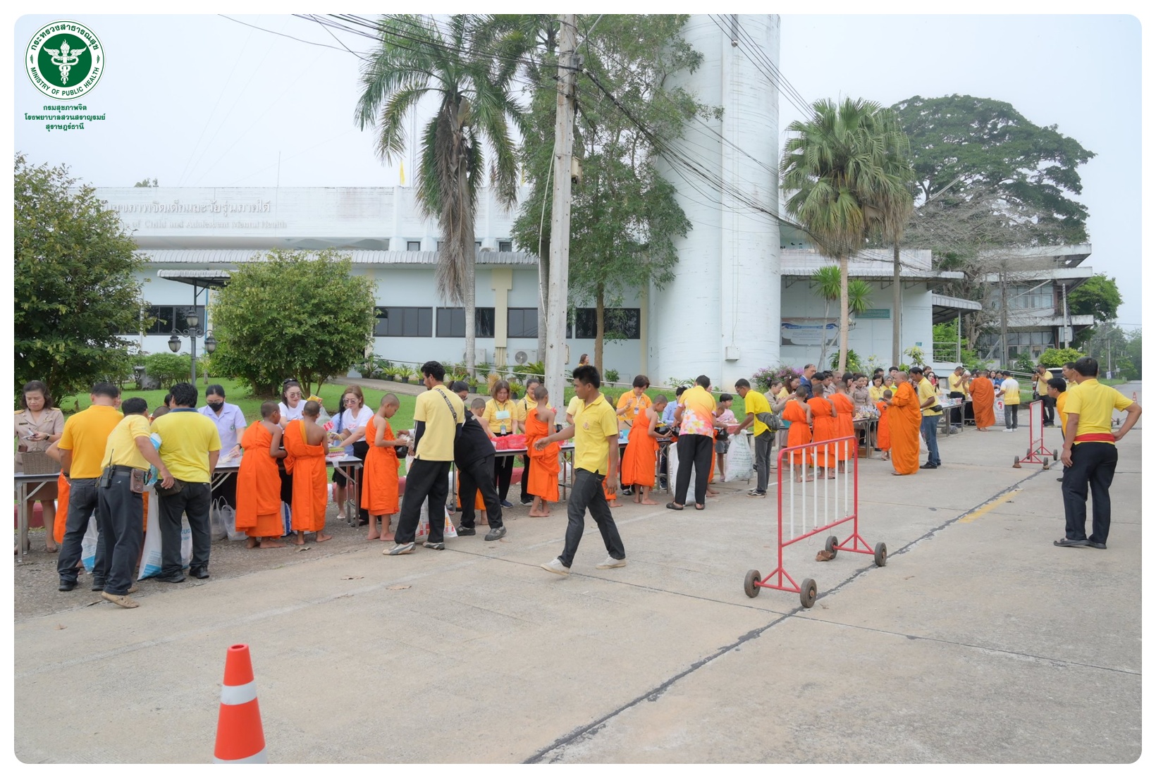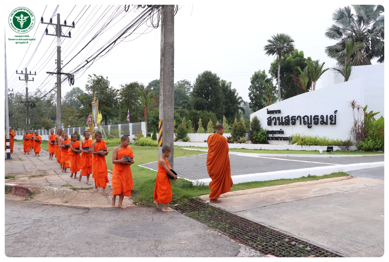 นายแพทย์ธิติพันธ์ ธานีรัตน์ ผู้อำนวยการโรงพยาบาลสวนสราญรมย์ แพทย์หญิงคัคนางค์ วาณิชย์เจริญ ผู้อำนวยการสถาบันสุขภาพจิตเด็กและวัยรุ่นภาคใต้ พร้อมด้วยคณะผู้บริหาร บุคลากรโรงพยาบาลสวนสราญรมย์ และสถาบันสุขภาพจิตเด็กและวัยรุ่นภาคใต้ ร่วมกิจกรรมทำบุญตักบาตร สามเณรใจสิงห์ วัดตรณาราม ตำบลท่าข้าม อำเภอพุนพิน จังหวัดสุราษฎร์ธานี จำนวน ๑๕ รูป เพื่อถวายเป็นพระราชกุศลแด่ในหลวงรัชกาลที่ ๙ ครบรอบ ๙ ปี สวรรคต ณ โรงพยาบาลสวนสราญรมย์ อำเภอพุนพิน จังหวัดสุราษฎร์ธานี