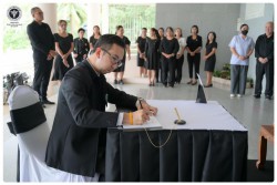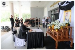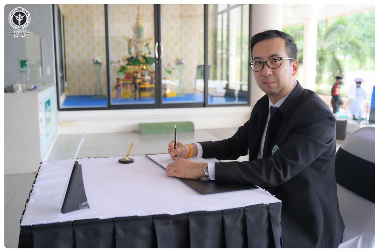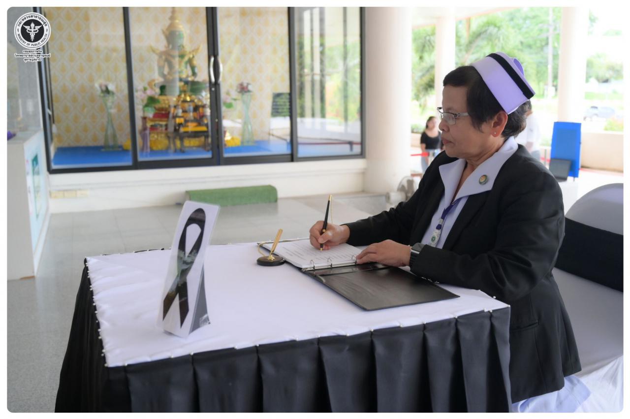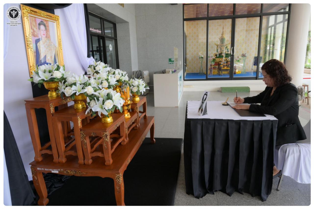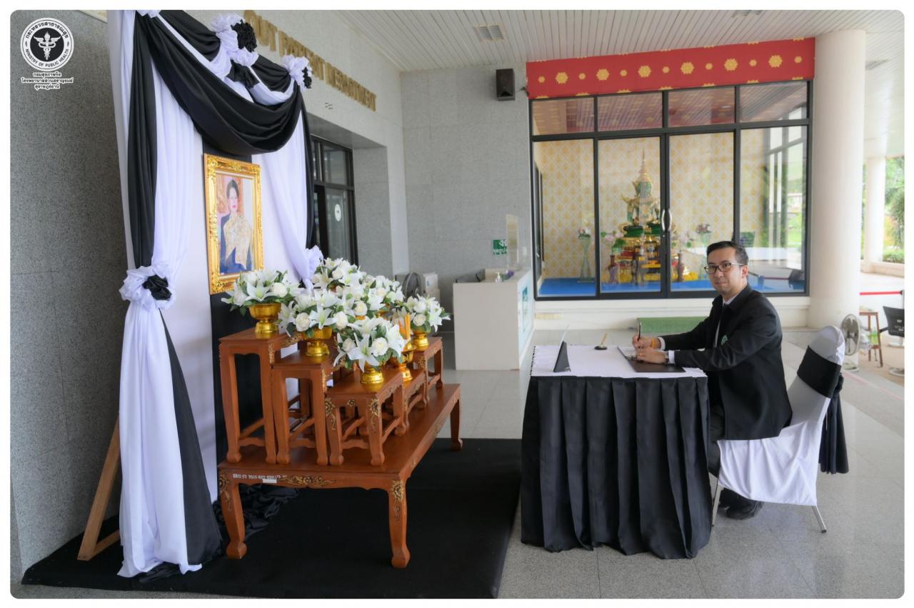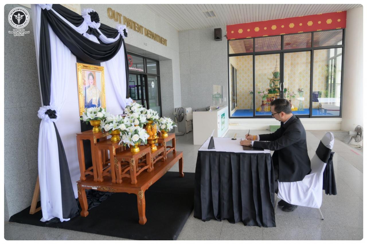 นายแพทย์ธิติพันธ์ ธานีรัตน์ ผู้อำนวยการโรงพยาบาลสวนสราญรมย์ พร้อมด้วย คณะผู้บริหาร และบุคลากรโรงพยาบาลสวนสราญรมย์ ร่วมพิธีน้อมรำลึกพระมหากรุณาธิคุณ และลงนามถวายความอาลัย สมเด็จพระนางเจ้าสิริกิติ์ พระบรมราชินีนาถ พระบรมราชชนนีพันปีหลวง ณ อาคารสราญราษฎร์ โรงพยาบาลสวนสราญรมย์ อำเภอพุนพิน จังหวัดสุราษฎร์ธานี