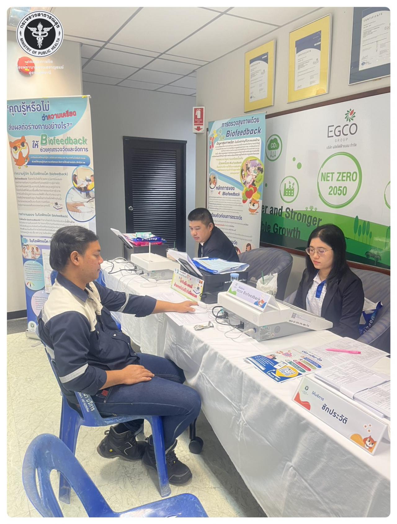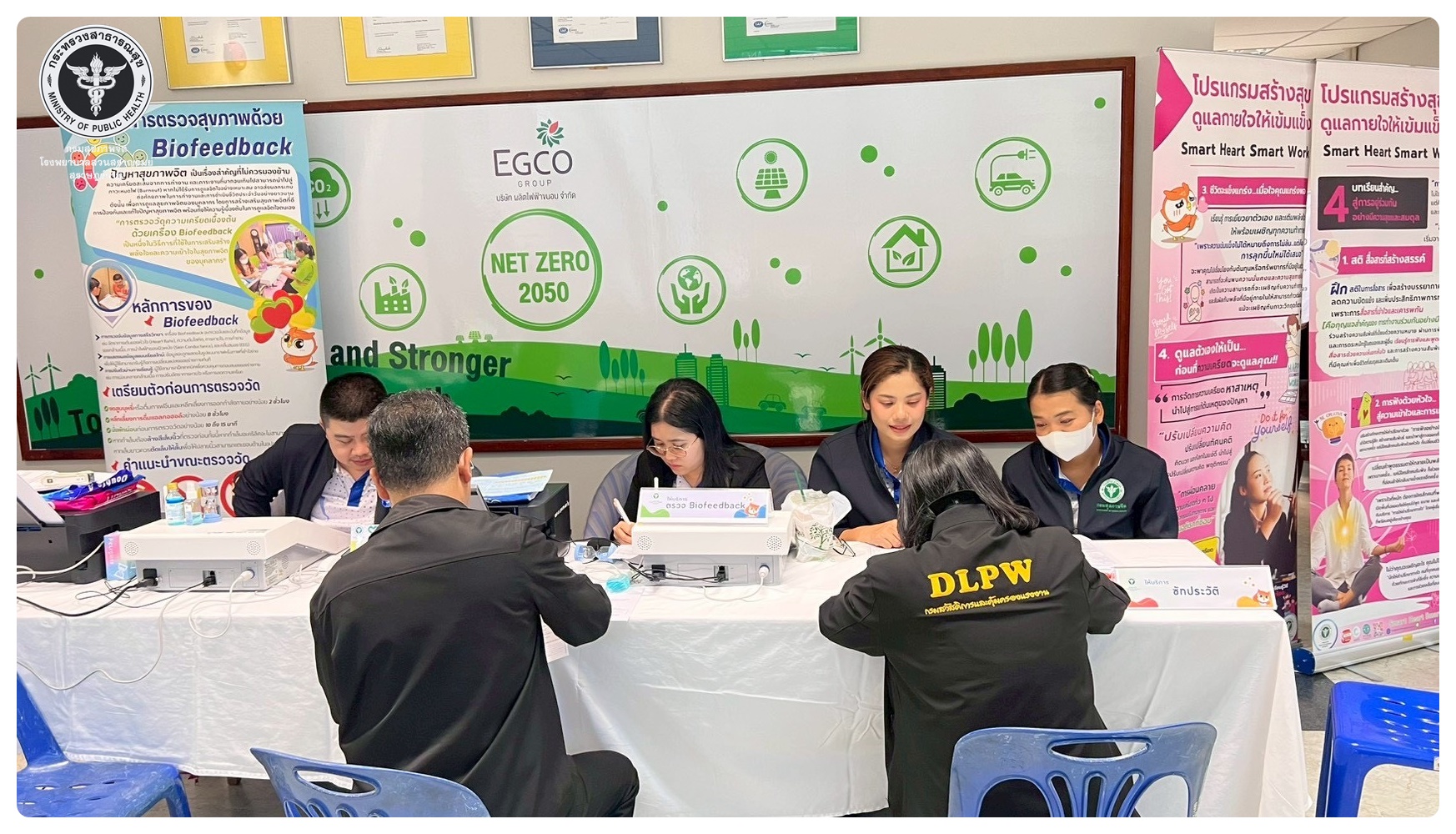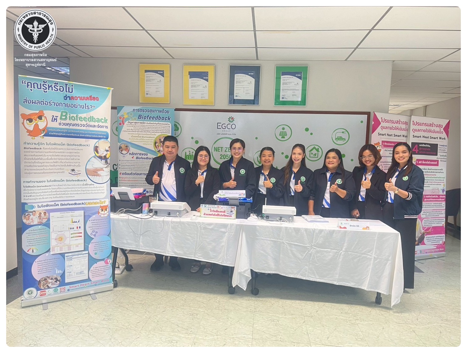 นายแพทย์ธิติพันธ์ ธานีรัตน์ ผู้อำนวยการโรงพยาบาลสวนสราญรมย์ มอบหมายให้ คณะกรรมการพัฒนาความรอบรู้ด้านสุขภาพจิต (Mental health literacy) โรงพยาบาลสวนสราญรมย์ ภายใต้การสร้างเสริมสุขภาพกายใจสู่การทำงานที่มีความสุข ร่วมกับ บริษัท ผลิตไฟฟ้าขนอม จำกัด (บฟข.) จัดงานสัปดาห์ความปลอดภัย และอาชีวอนามัย ประจำปี 2568 และบริการตรวจสุขภาพด้วยโปรแกรมสร้างเสริมสุขภาพ Smart Heart Smart Work มีวัตถุประสงค์เพื่อให้ผู้เข้ารับบริการมีความตระหนักถึงอันตรายจากสภาวะเครียด สามารถเข้าใจขั้นตอนการประเมินสภาวะความเครียดได้ด้วยตนเอง และรู้จักวิธีจัดการความเครียดที่เหมาะสม ซึ่งประกอบด้วย กิจกรรมการประเมินความเครียด เรียนรู้บทเรียนวิธีการลดความเครียดด้วยตนเอง ผ่านแอพพลิเคชั่น ต่อ เติม ใจ บริการตรวจสุขภาพกายใจด้วยเครื่อง Biofeedback และการให้บริการให้คำปรึกษา แนะนำวิธีการจัดการความเครียด ฝึกเทคนิคการผ่อนคลาย และเสริมสร้างพลังบวก เพื่อช่วยให้บุคลากรมีสุขภาพกายใจที่สมดุล สามารถทำงานได้อย่างมีประสิทธิภาพมากขึ้น กลุ่มเป้าหมายที่เข้าร่วมงาน ได้แก่ ผู้บริหาร พนักงาน ลูกจ้าง ผู้รับเหมา และผู้สนใจ รวมทั้งสิ้น 64 คน ณ บริษัท ผลิตไฟฟ้าขนอม จำกัด อำเภอขนอม จังหวัดนครศรีธรรมราช