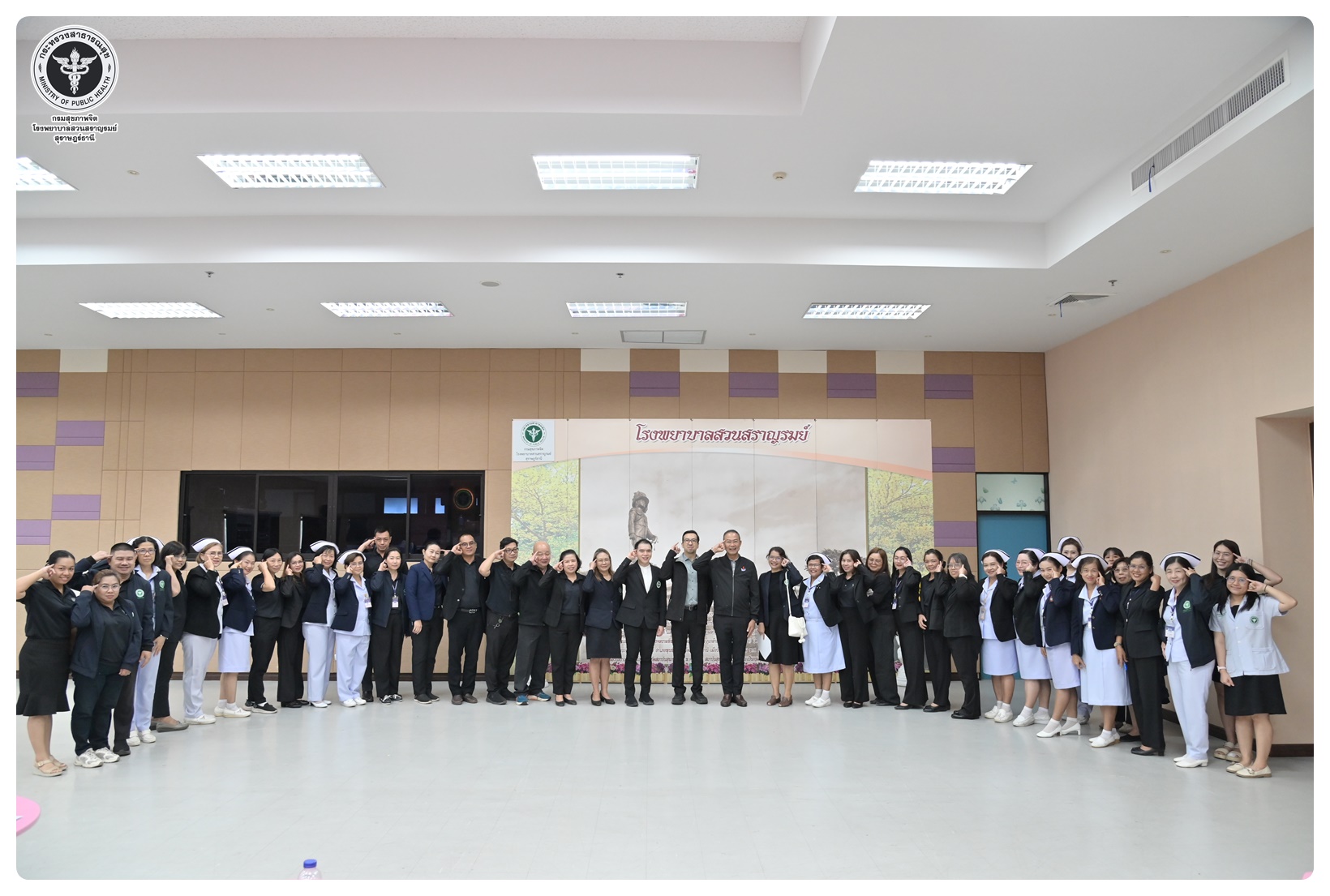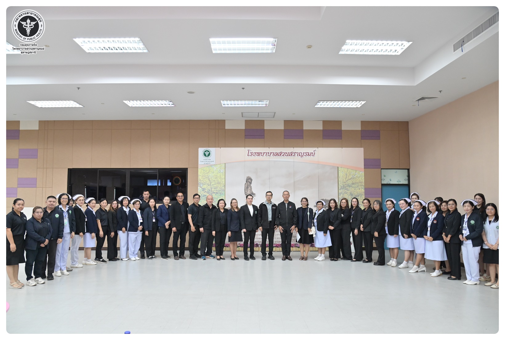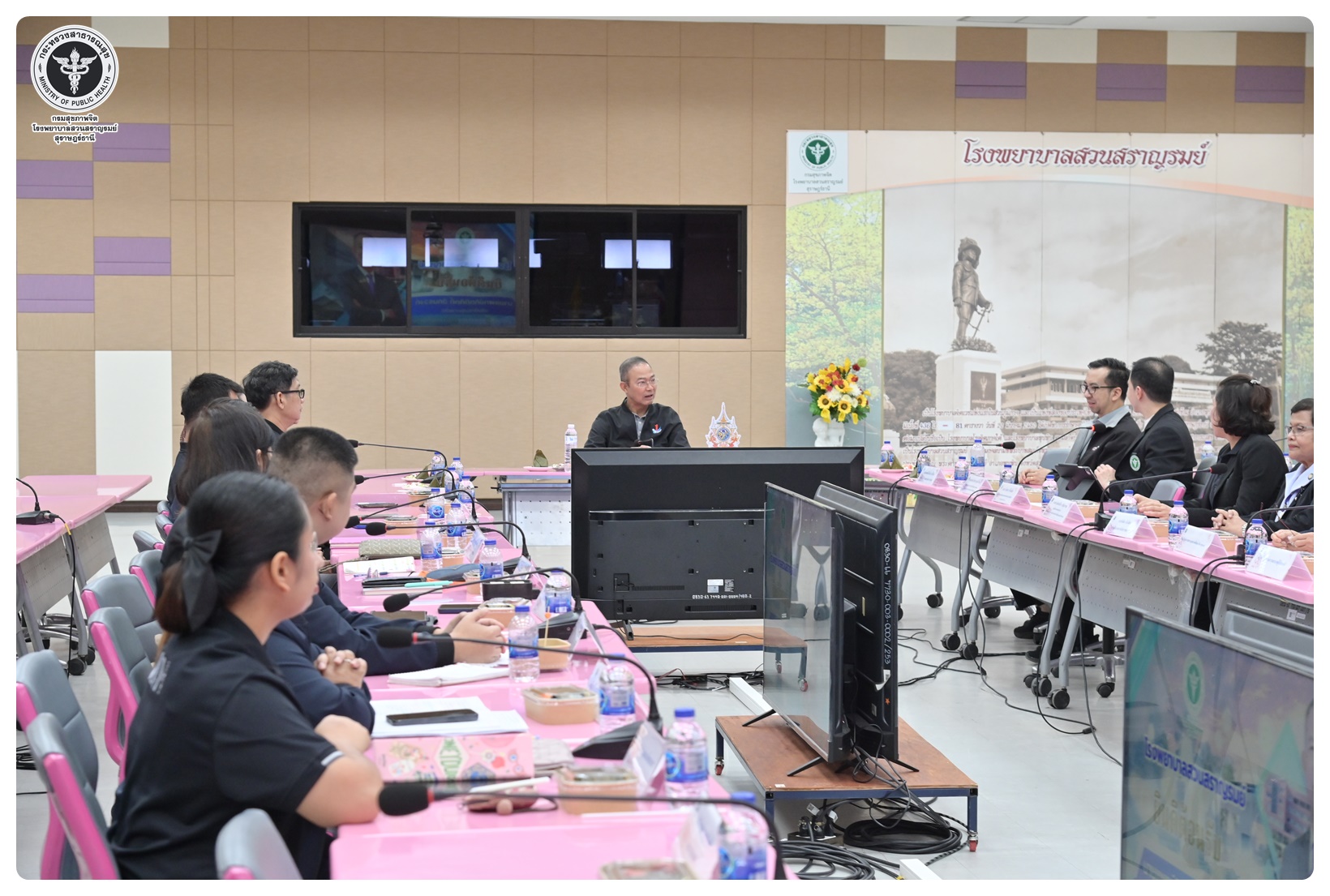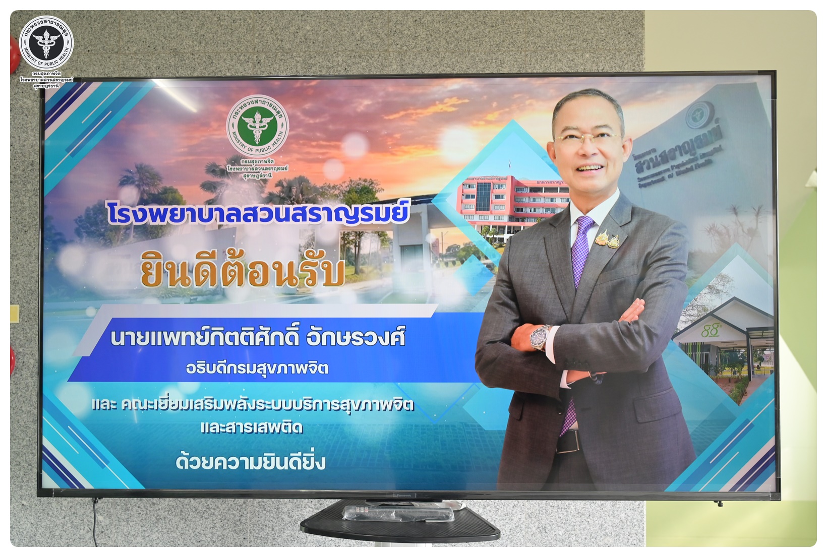 นายแพทย์กิตติศักดิ์ อักษรวงศ์ อธิบดีกรมสุขภาพจิต ลงพื้นที่ตรวจเยี่ยมเสริมพลังระบบบริการสุขภาพจิตและสารเสพติด ทั้งในส่วนด่านหน้าและหน่วยสนับสนุน โรงพยาบาลสวนสราญรมย์ เพื่อยกระดับบริการและคุณภาพชีวิตที่ดีของประชาชน พร้อมด้วย นายแพทย์ธิติพันธ์ ธานีรัตน์ ผู้อำนวยการโรงพยาบาลสวนสราญรมย์ แพทย์หญิงคัดนางค์ วาณิชย์เจริญ ผู้อำนวยการสถาบันสุขภาพจิตเด็กและวัยรุ่นภาคใต้ แพทย์หญิงณัฐพร ใจสมุทร์ สกุลแพทย์ ผู้อำนวยการศูนย์สุขภาพจิตที่ 11 คณะผู้บริหาร และบุคลากรโรงพยาบาลสวนสราญรมย์ให้การต้อนรับ โดยมี นายแพทย์วัชรพล สกุลวิโรจน์ รองผู้อำนวยการฝ่ายการแพทย์ เป็นผู้เสนอผลการดำเนินงาน ณ ห้องประชุมชั้น 5 อาคารสราญราษฎร์ โรงพยาบาลสวนสราญรมย์ อำเภอพุนพิน จังหวัดสุราษฎร์ธานี