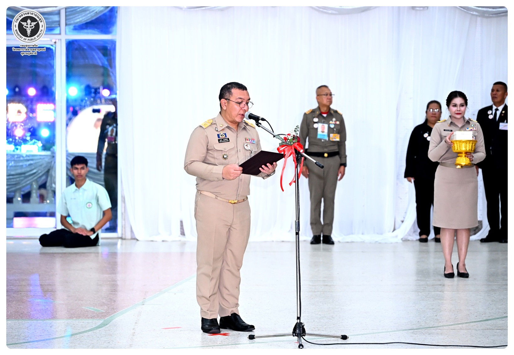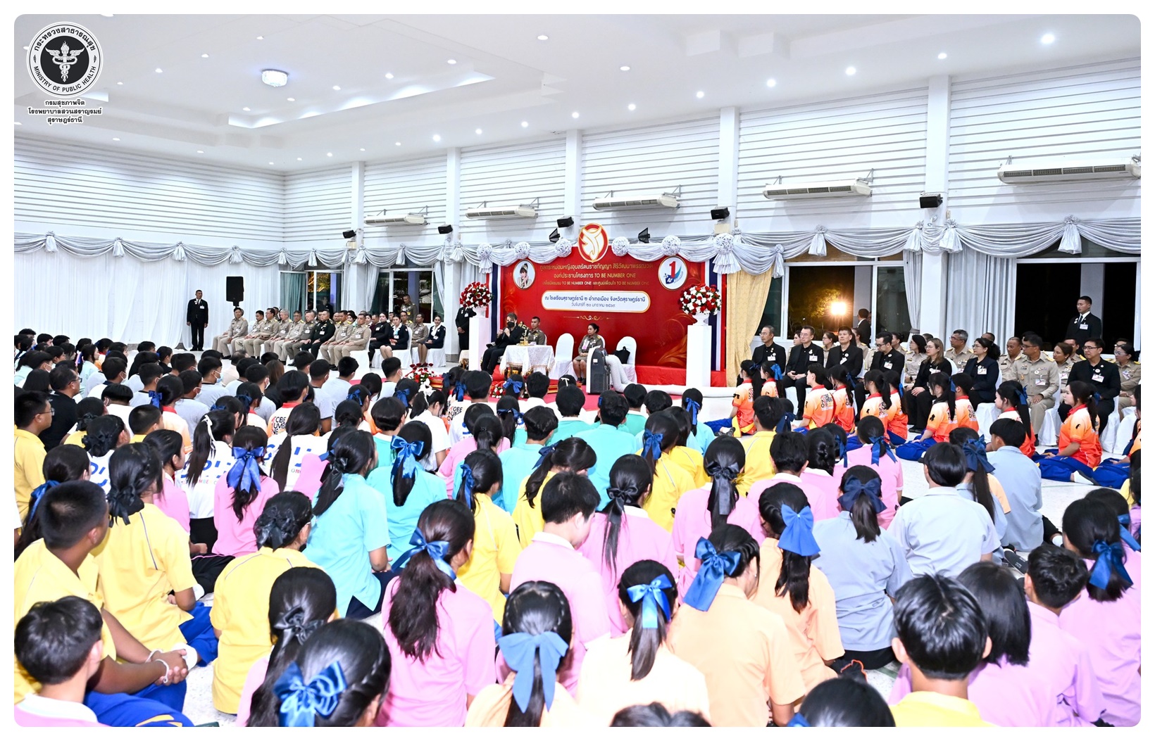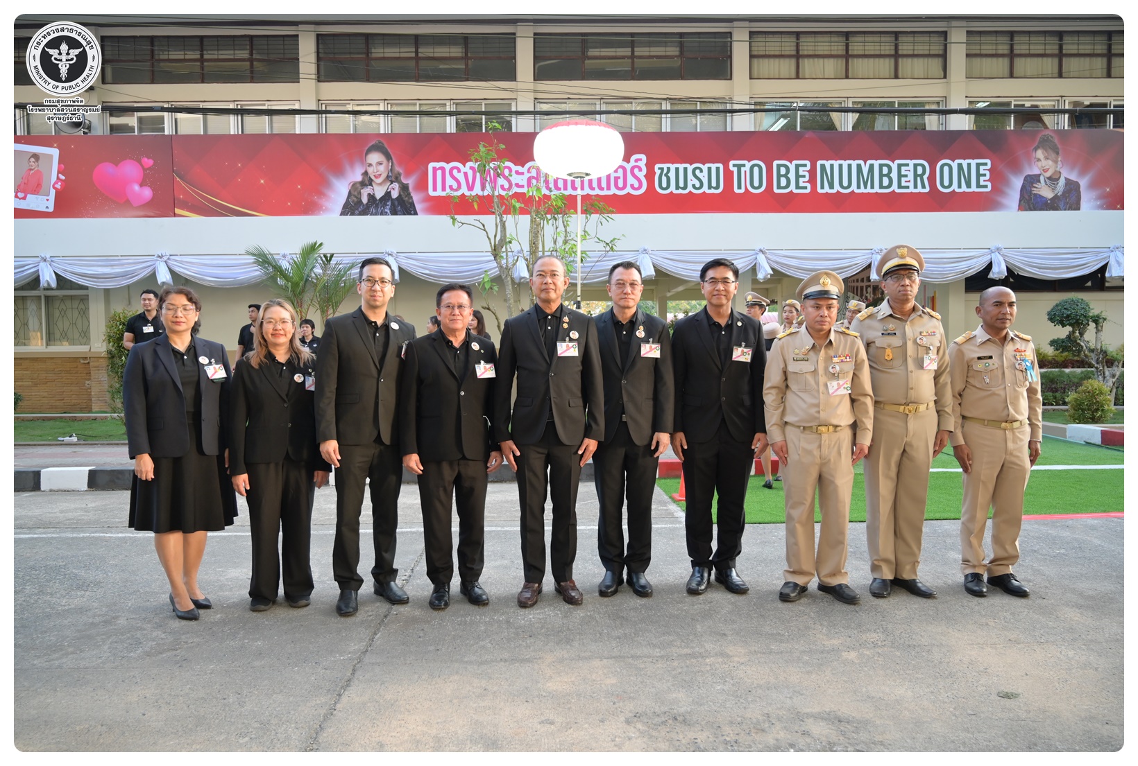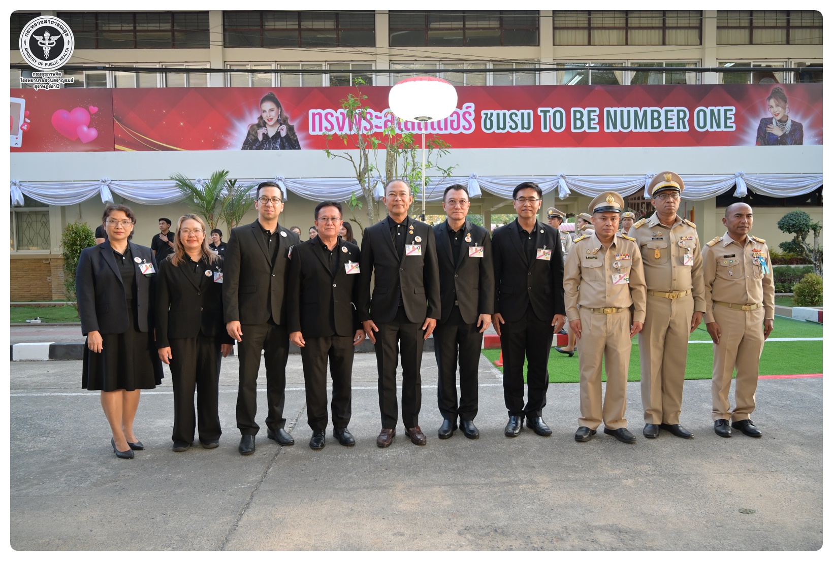 นายแพทย์กิตติศักดิ์ อักษรวงศ์ อธิบดีกรมสุขภาพจิต พร้อมด้วย นายแพทย์พงศ์เกษม ไข่มุกด์ ที่ปรึกษากรมสุขภาพจิต นายแพทย์จุมภฏ พรมสีดา รองอธิบดีกรมสุขภาพจิต นายแพทย์ธิติพันธ์ ธานีรัตน์ ผู้อำนวยการโรงพยาบาลสวนสราญรมย์ แพทย์หญิงคัดนางค์ วาณิชย์เจริญ ผู้อำนวยการสถาบันสุขภาพจิตเด็กและวัยรุ่นภาคใต้ และแพทย์หญิงณัฐพร ใจสมุทร์ สกุลแพทย์ ผู้อำนวยการศูนย์สุขภาพจิตที่ ๑๑ ร่วมเฝ้ารับเสด็จทูลกระหม่อมหญิงอุบลรัตนราชกัญญา สิริวัฒนาพรรณวดี องค์ประธานโครงการรณรงค์ป้องกันและแก้ไขปัญหายาเสพติด TO BE NUMBER ONE เสด็จเปิดศูนย์เพื่อนใจ TO BE NUMBER ONE และติดตามผลการดำเนินงาน โครงการ TO BE NUMBER ONE จังหวัดสุราษฎร์ธานี ทรงเปิดชมรม TO BE NUMBER ONE โดยมี นายจุมพฏ วรรณฉัตรสิริ ผู้ว่าราชการจังหวัดสุราษฎร์ธานี นายกเหล่ากาชาดจังหวัดสุราษฎร์ธานี ทหาร ตำรวจ และข้าราชการ เฝ้ารับเสด็จฯ ณ โรงเรียนสุราษฎร์ธานี ๒ อำเภอเมือง จังหวัดสุราษฎร์ธานี