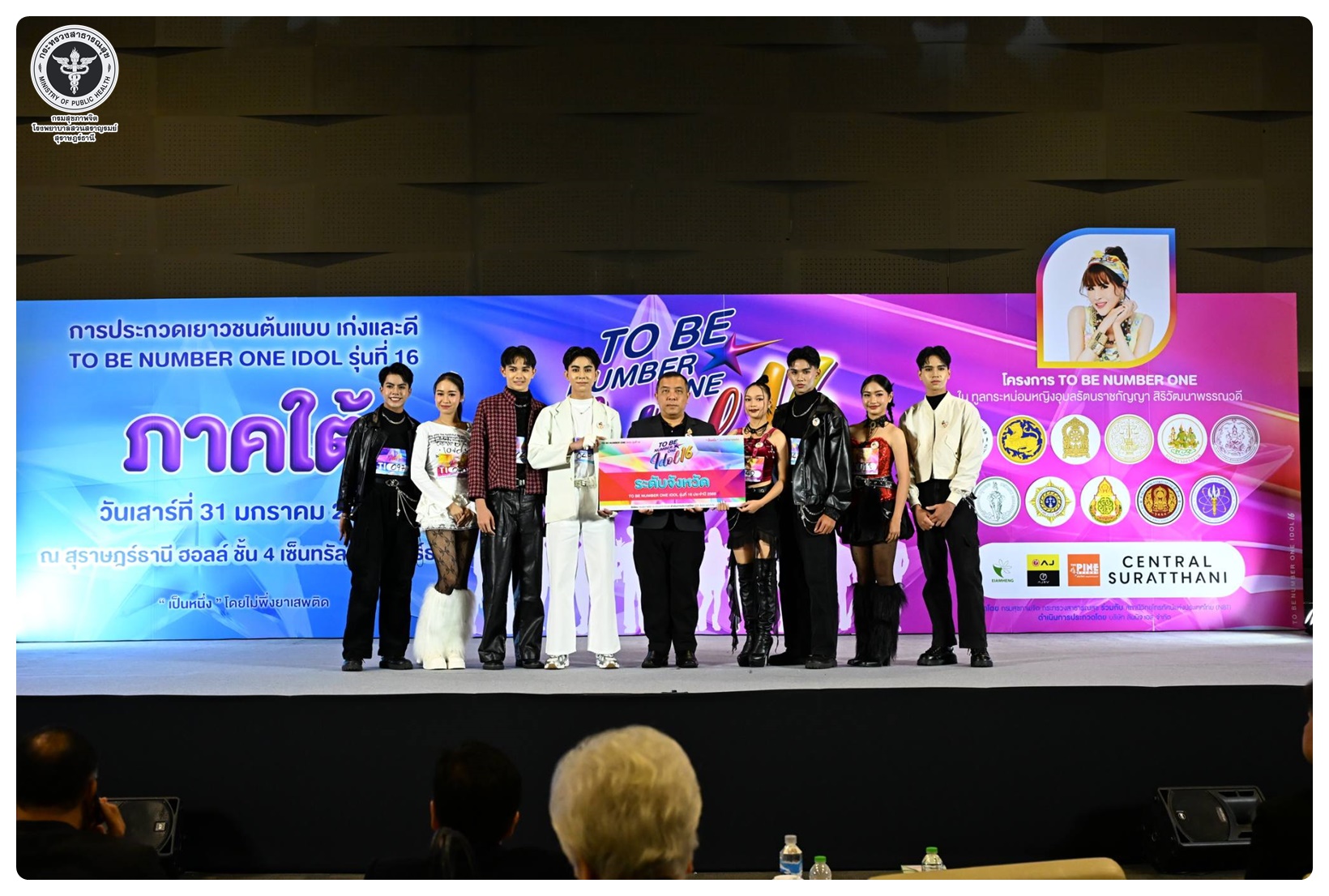 นายแพทย์จุมภฏ พรมสีดา รองอธิบดีกรมสุขภาพจิต ให้เกียรติเป็นประธานกล่าวชื่นชมแสดงความยินดีแก่ผู้เข้าประกวดเยาวชนเก่งและดี TO BE NUMBER ONE IDOL รุ่นที่ 16 ประจำปี 2569 รอบคัดเลือกระดับภาคใต้ โดยมี นายจุมพฎ วรรณฉัตรสิริ ผู้ว่าราชการจังหวัดสุราษฎร์ธานี ให้เกียรติเป็นประธานกล่าวต้อนรับ พร้อมด้วย นายแพทย์พงศ์เกษม ไข่มุกด์ ที่ปรึกษากรมสุขภาพจิต นายแพทย์ธิติพันธ์ ธานีรัตน์ ผู้อำนวยการโรงพยาบาลสวนสราญรมย์ ผู้บริหารภาครัฐ เอกชน และประชาชน ร่วมงาน ณ ศูนย์การค้าเซ็นทรัล สุราษฎร์ธานี จังหวัดสุราษฎร์ธานี