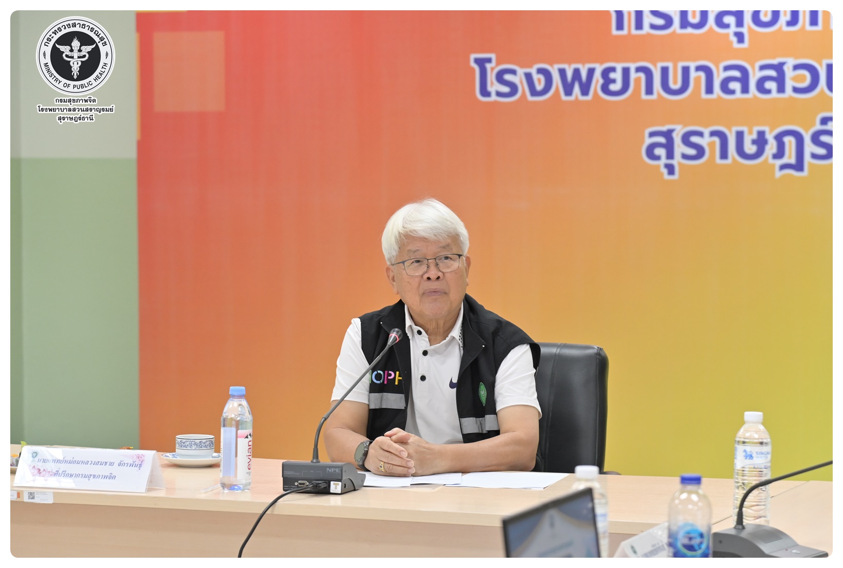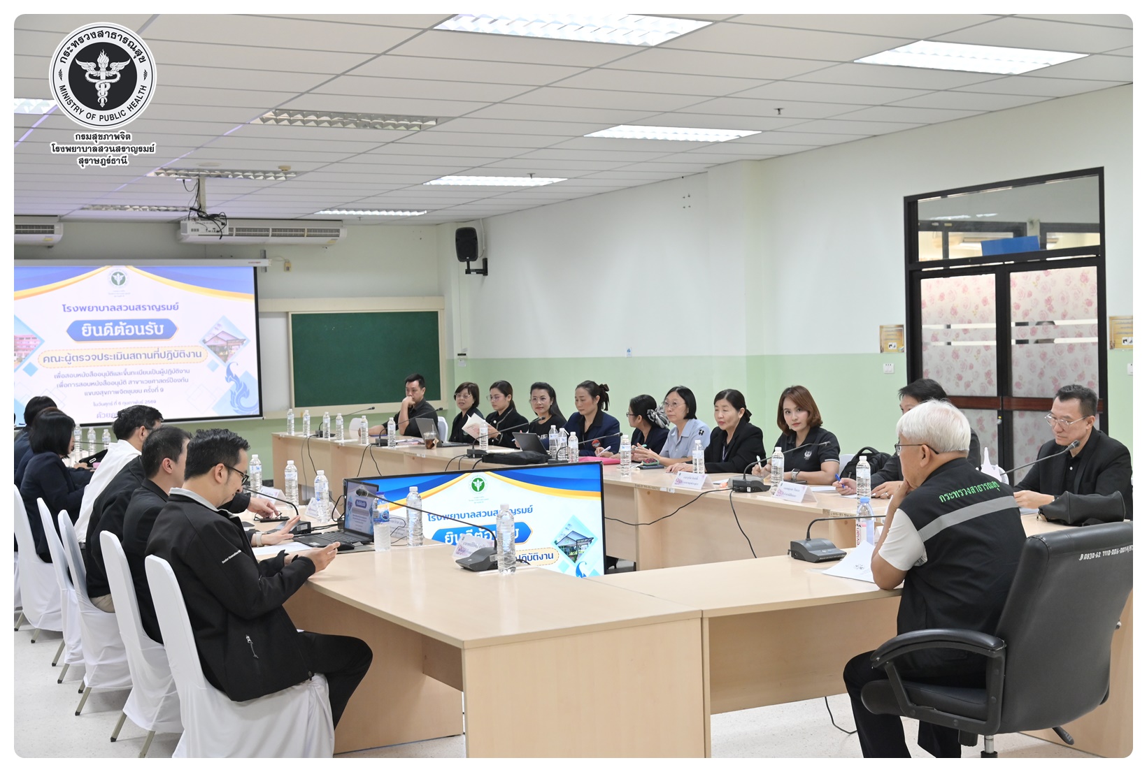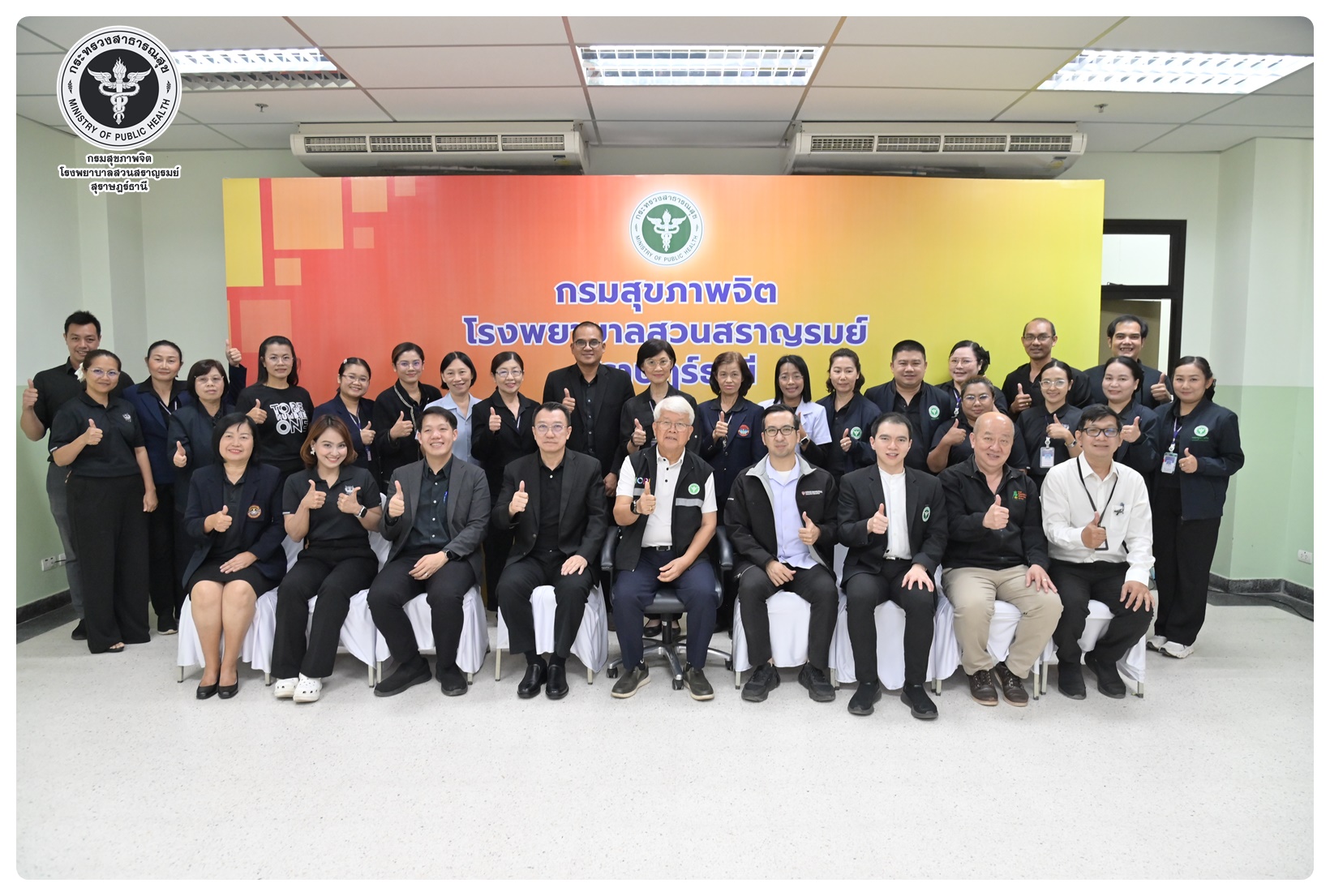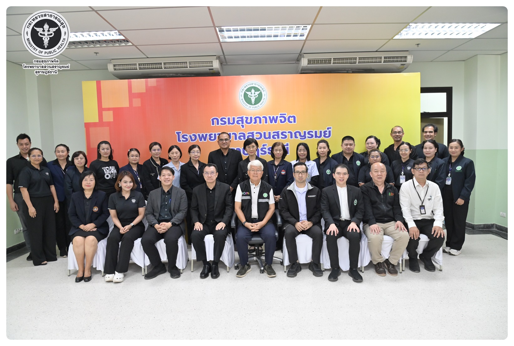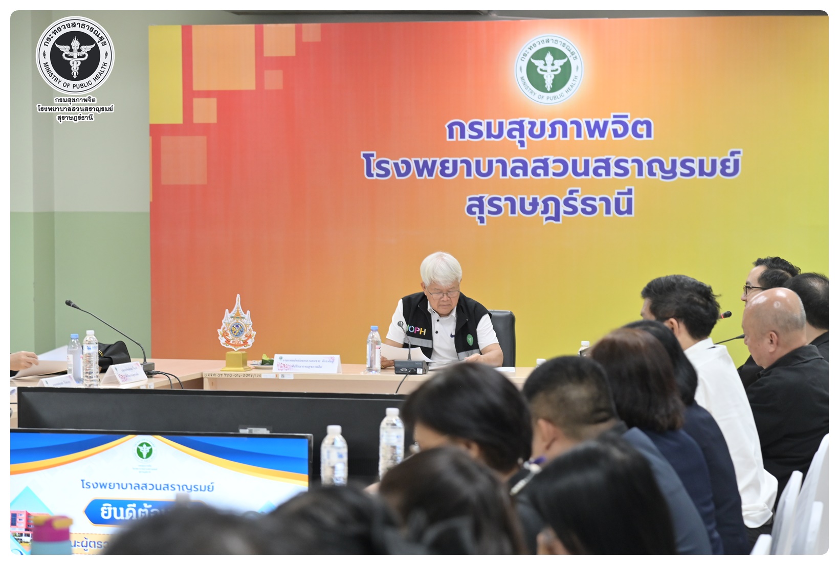 นายแพทย์หม่อมหลวงสมชาย จักรพันธุ์ ประธานที่ปรึกษากรมสุขภาพจิต พร้อมด้วยนายแพทย์พงศ์เกษม ไข่มุกด์ ที่ปรึกษากรมสุขภาพจิต นายแพทย์ศุภเสก วิโรจนาภา หัวหน้าสถาบันฝึกอบรมแพทย์ประจำบ้าน และนางสาวสุวิมล อินทร์เชื้อ นักวิชาการสาธารณสุขชำนาญการ เข้าตรวจประเมินสถานที่ปฏิบัติงานเพื่อสอบหนังสืออนุมัติและขึ้นทะเบียนเป็นผู้ปฏิบัติงาน เพื่อการสอบหนังสืออนุมัติ สาขาเวชศาสตร์ป้องกัน แขนงสุขภาพจิตชุมชน ครั้งที่ 9 โดยมี นายแพทย์ธิติพันธ์ ธานีรัตน์ ผู้อำนวยการโรงพยาบาลสวนสราญรมย์ คณะผู้บริหารและบุคลากรโรงพยาบาลสวนสราญรมย์ ร่วมให้การต้อนรับ และนำเสนอข้อมูล ณ ห้องประชุม 3/1 อาคารสราญราษฎร์ ชั้น 3 โรงพยาบาลสวนสราญรมย์ อำเภอพุนพิน จังหวัดสุราษฎร์ธานี