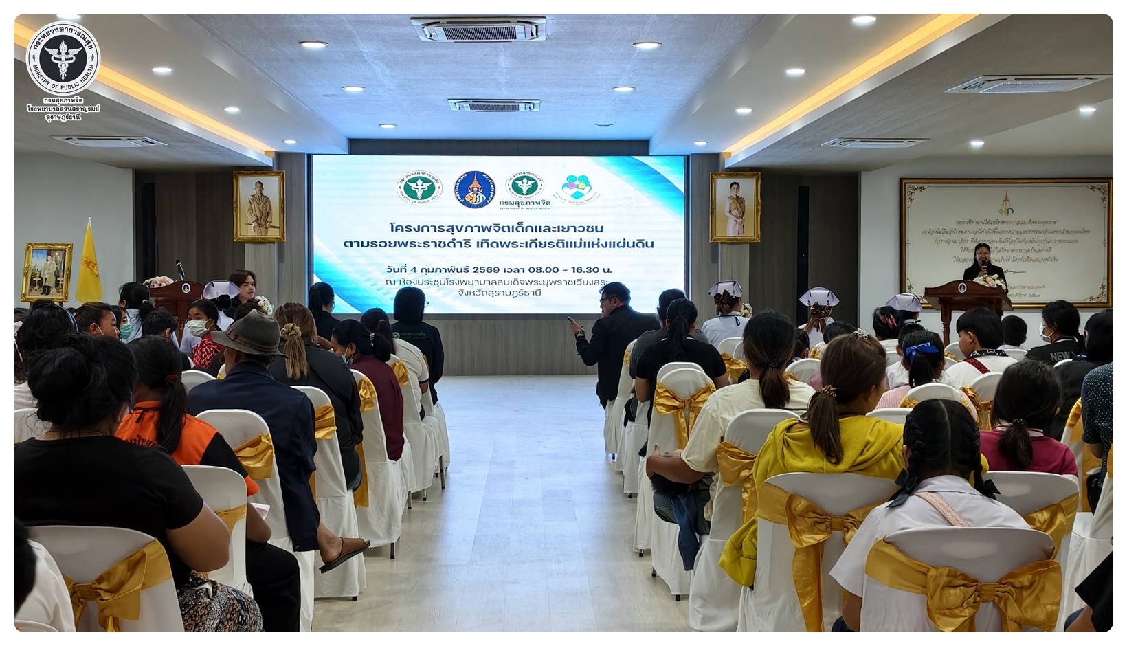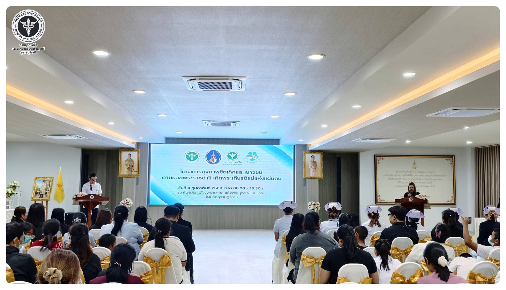 นายแพทย์กิตติศักดิ์ อักษรวงศ์ อธิบดีกรมสุขภาพจิต มอบหมายให้ นายแพทย์ธิติพันธ์ ธานีรัตน์ ผู้อำนวยการโรงพยาบาลสวนสราญรมย์ เป็นประธานในพิธีเปิดโครงการสุขภาพจิตเด็กและเยาวชนตามรอยพระราชดำริ เทิดพระเกียรติแม่แห่งแผ่นดิน กิจกรรมคาราวานจิตแพทย์เด็กและวัยรุ่นเพิ่มประสิทธิภาพ การเข้าถึงบริการโรคทางจิตเวชเด็กและวัยรุ่นในโรงพยาบาลสมเด็จพระยุพราช โดยมี แพทย์หญิงคัคนางค์ วาณิชย์เจริญ ผู้อำนวยการสถาบันสุขภาพจิตเด็กและวัยรุ่นภาคใต้ เป็นผู้กล่าวรายงาน นายแพทย์ปรีชา สุมาลัย ผู้อำนวยการโรงพยาบาลสมเด็จพระยุพราชเวียงสระ กล่าวต้อนรับ แพทย์หญิงพรรณพิมล วิปุลากร ที่ปรึกษากรมสุขภาพจิต และแพทย์หญิงณัฐพร ใจสมุทร์ สกุลแพทย์ ผู้อำนวยการศูนย์สุขภาพจิตที่ 11 ร่วมในพิธีเปิด มีวัตถุประสงค์เพื่อช่วยเหลือกลุ่มเป้าหมายในพื้นที่ห่างไกลให้เข้าถึงการตรวจวินิจฉัยและบำบัดรักษาที่มีประสิทธิภาพ โดยเฉพาะโรคที่ต้องการความดูแลเฉพาะทางอย่าง โรคซึมเศร้า โรคสมาธิสั้น และโรคออทิสติก เพื่อให้เด็กและเยาวชนมีคุณภาพชีวิตที่ดีขึ้นตามความเหมาะสมของแต่ละช่วงวัย พร้อมด้วย หัวหน้าส่วนราชการ หน่วยงานสาธารณสุข ครู ผู้ปกครอง และนักเรียนในสถานศึกษาในอำเภอเวียงสระ เข้าร่วมในกิจกรรม ณ ห้องประชุมโรงพยาบาลสมเด็จพระยุพราชเวียงสระ อำเภอเวียงสระ จังหวัดสุราษฎร์ธานี