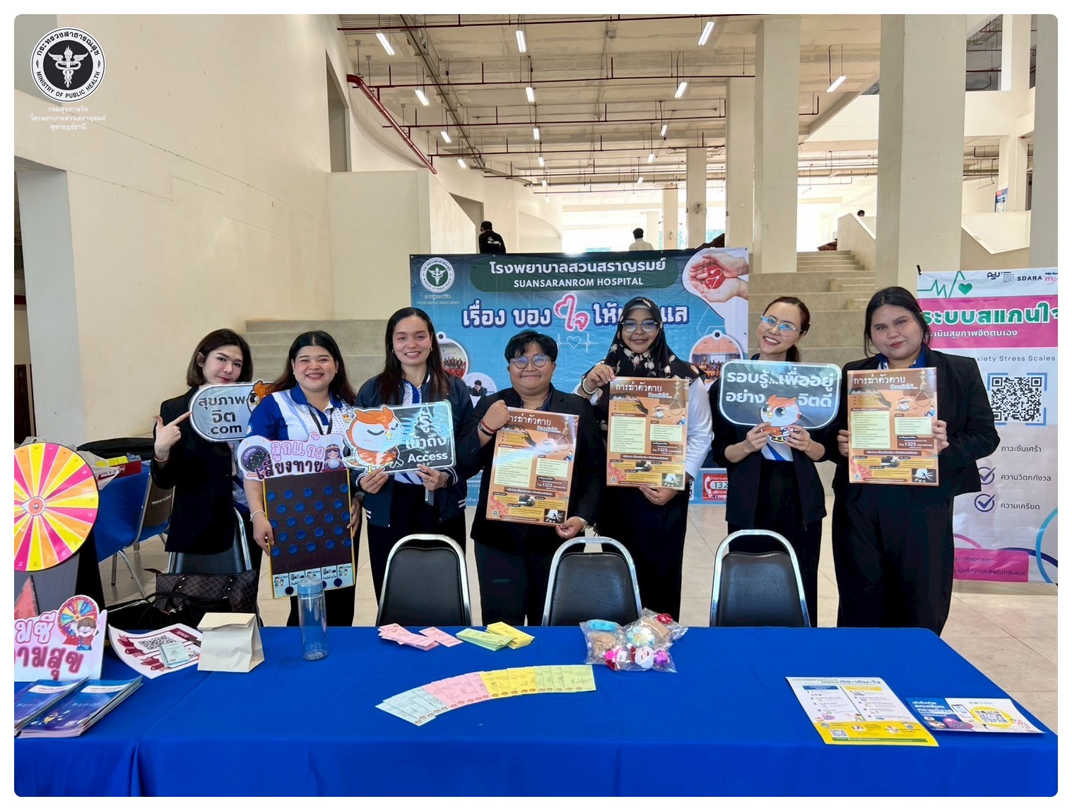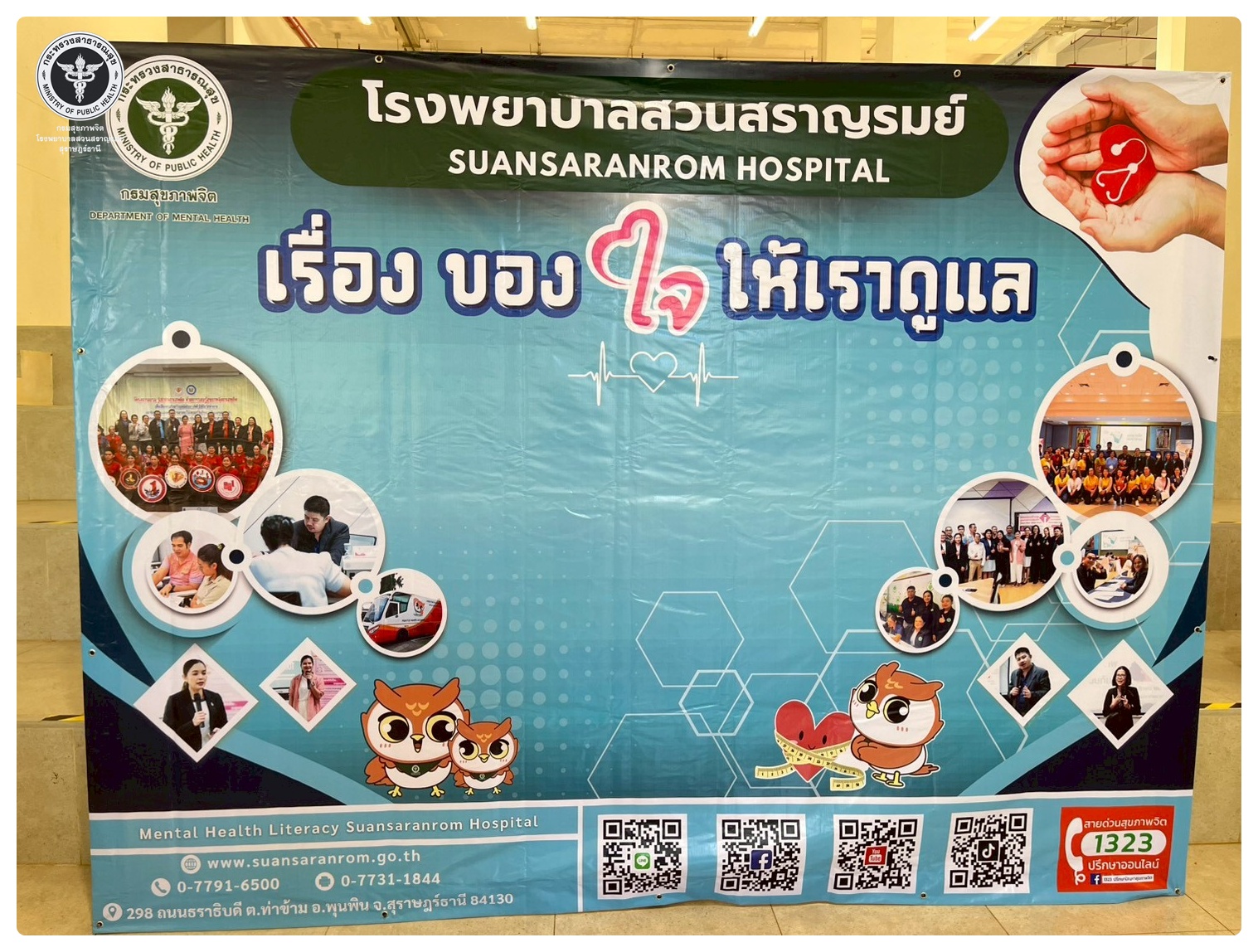 นายแพทย์ธิติพันธ์ ธานีรัตน์ ผู้อำนวยการโรงพยาบาลสวนสราญรมย์ มอบหมายให้ คณะกรรมการพัฒนาความรอบรู้ด้านสุขภาพจิต (Mental health literacy) โรงพยาบาลสวนสราญรมย์ ภายใต้โครงการสร้างเสริมเสริมความรู้และสนับสนุนกิจกรรมด้านสุขภาพจิตเพื่อการสร้างเสริมการดูแลสุขภาพใจในสถานศึกษา ร่วมกับมหาวิทยาลัยสงขลานครินทร์ วิทยาเขตสุราษฎร์ธานี มีวัตถุประสงค์เพื่อสร้างเสริมสุขภาพใจ เพื่อส่งเสริมความรู้ด้านสุขภาพจิตขั้นพื้นฐาน ตลอดจนพัฒนาทักษะการตระหนักรู้ในตนเอง การเข้าใจตนเอง และการดูแลสุขภาพใจอย่างเหมาะสมแก่นักศึกษาวิทยาเขตสุราษฎร์ธานี โดยมี รองศาสตราจารย์สุชาดา ทิพย์มนตรี รองอธิการบดีวิทยาเขตสุราษฎร์ธานี เป็นประธานในพิธี ซึ่งกลุ่มเป้าหมายประกอบด้วย นักศึกษาวิทยาเขตสุราษฎร์ธานี จำนวน 200 คน ณ อาคารศูนย์การเรียนรู้ มหาวิทยาลัยสงขลานครินทร์ วิทยาเขตสุราษฎร์ธานี