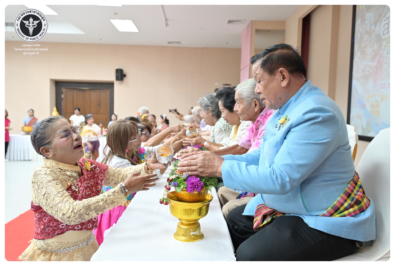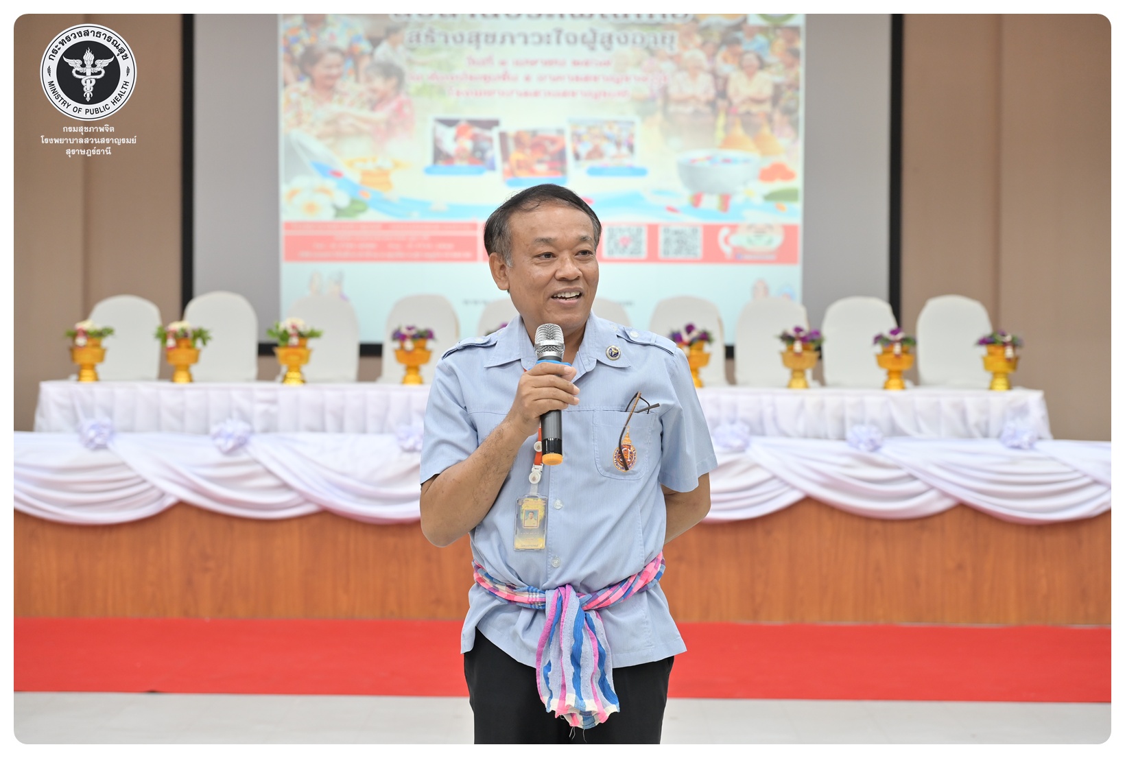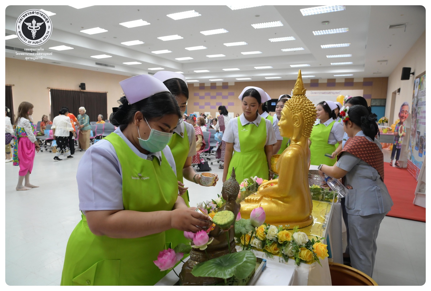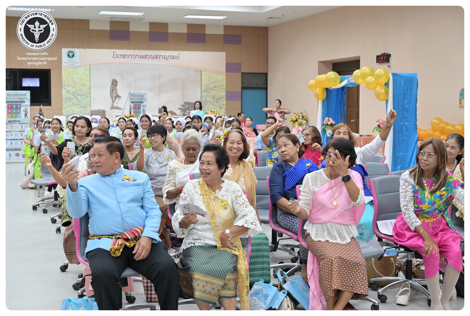 นายแพทย์ธิติพันธ์ ธานีรัตน์ ผู้อำนวยการโรงพยาบาลสวนสราญรมย์ มอบหมายให้ นายปราโมทย์ ศรีโพธิ์ชัย รองผู้อำนวยการฝ่ายพัฒนาคุณภาพองค์กรและความเป็นเลิศ เป็นประธานในพิธีเปิดโครงการพัฒนาเสริมสร้างความรอบรู้สุขภาพจิต โรงพยาบาลสวนสราญรมย์ กิจกรรมที่ ๓ กิจกรรมสืบสานประเพณีไทยสร้างสุขภาวะใจผู้สูงวัย โดยมี ดร.อุไรวรรณ เกิดสังข์ นักสังคมสงเคราะห์เชี่ยวชาญ เป็นผู้กล่าวรายงาน ภายใต้ความร่วมมือของคณะกรรมการพัฒนาความรอบรู้สุขภาพจิต และคณะกรรมการขับเคลื่อนงานสูงอายุ มีวัตถุประสงค์เพื่อแสดงถึงความรัก ความกตัญญู ความเคารพนับถือ และอนุรักษ์วัฒนธรรม ประเพณีสงกรานต์ไทยอันดีงามสืบไป โดยจัดกิจกรรมสรงน้ำพระ รดน้ำขอพรผู้สูงอายุ และแลกเปลี่ยนเรียนรู้ ผ่านบูทกิจกรรมชะลอเสื่อม จำนวน 5 บูท ผู้เข้าร่วมกิจกรรม ได้แก่ สมาชิกชมรมผู้สูงอายุต่าง ๆ ในจังหวัดสุราษฎร์ธานี นักศึกษาพยาบาลคณะพยาบาลศาสตร์ มหาวิทยาลัยราชภัฏสุราษฎร์ธานีและบุคลากรโรงพยาบาลสวนสราญรมย์ จำนวน 150 คน ณ ห้องประชุมชั้น 5 อาคารสราญราษฎร์ โรงพยาบาลสวนสราญรมย์ อำเภอพุนพิน จังหวัดสุราษฎร์ธานี
