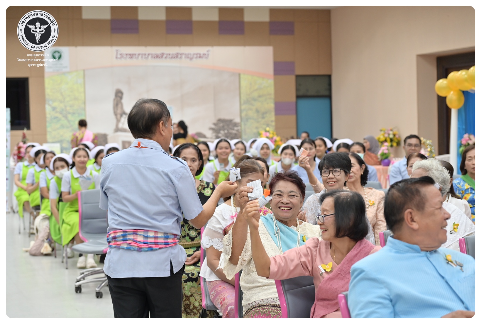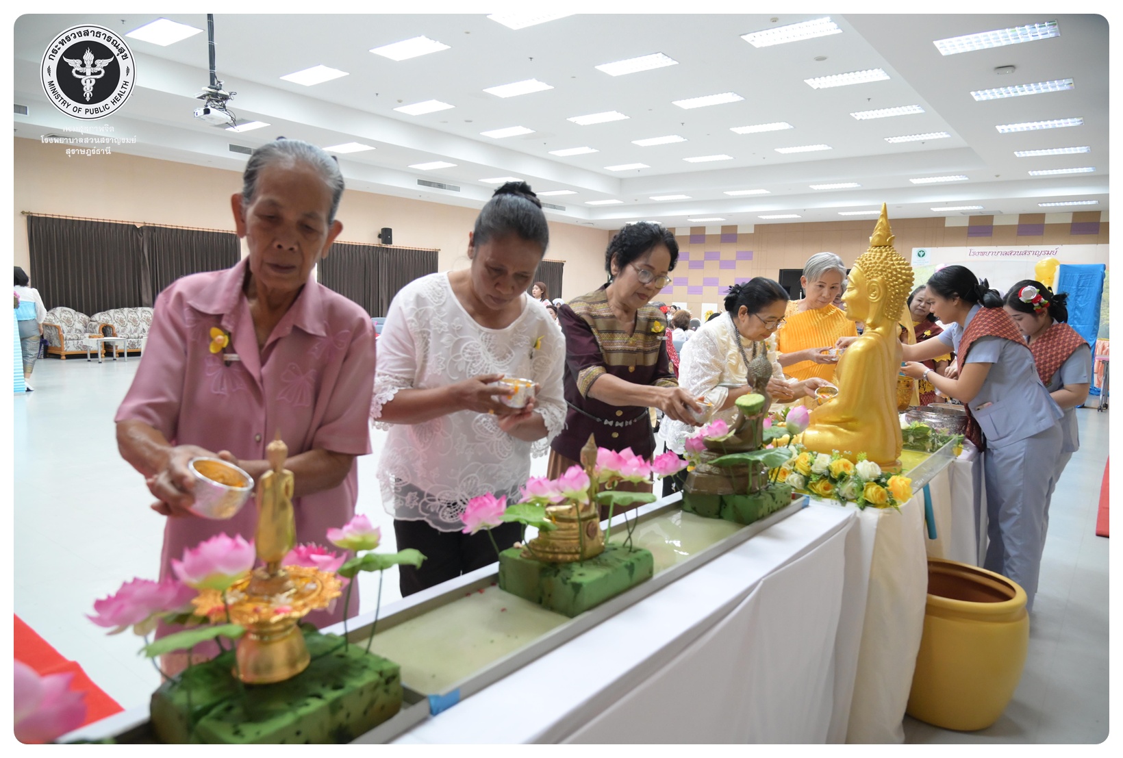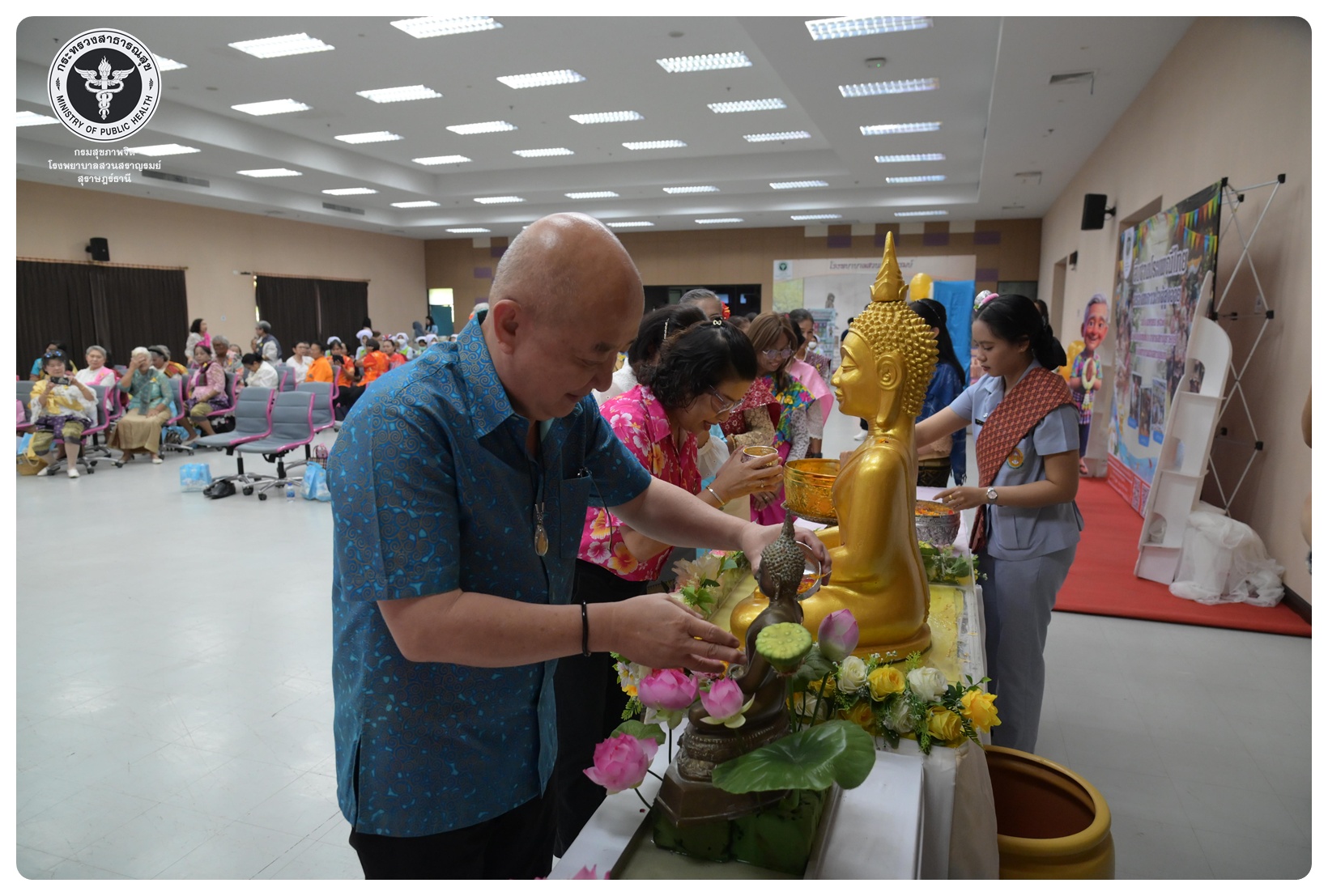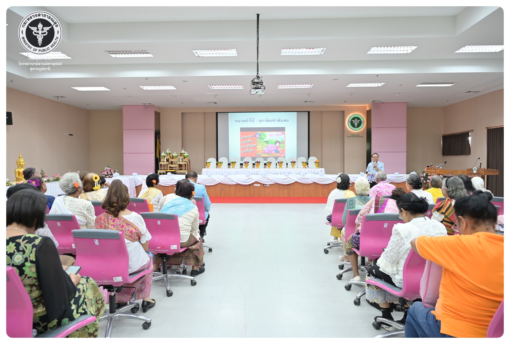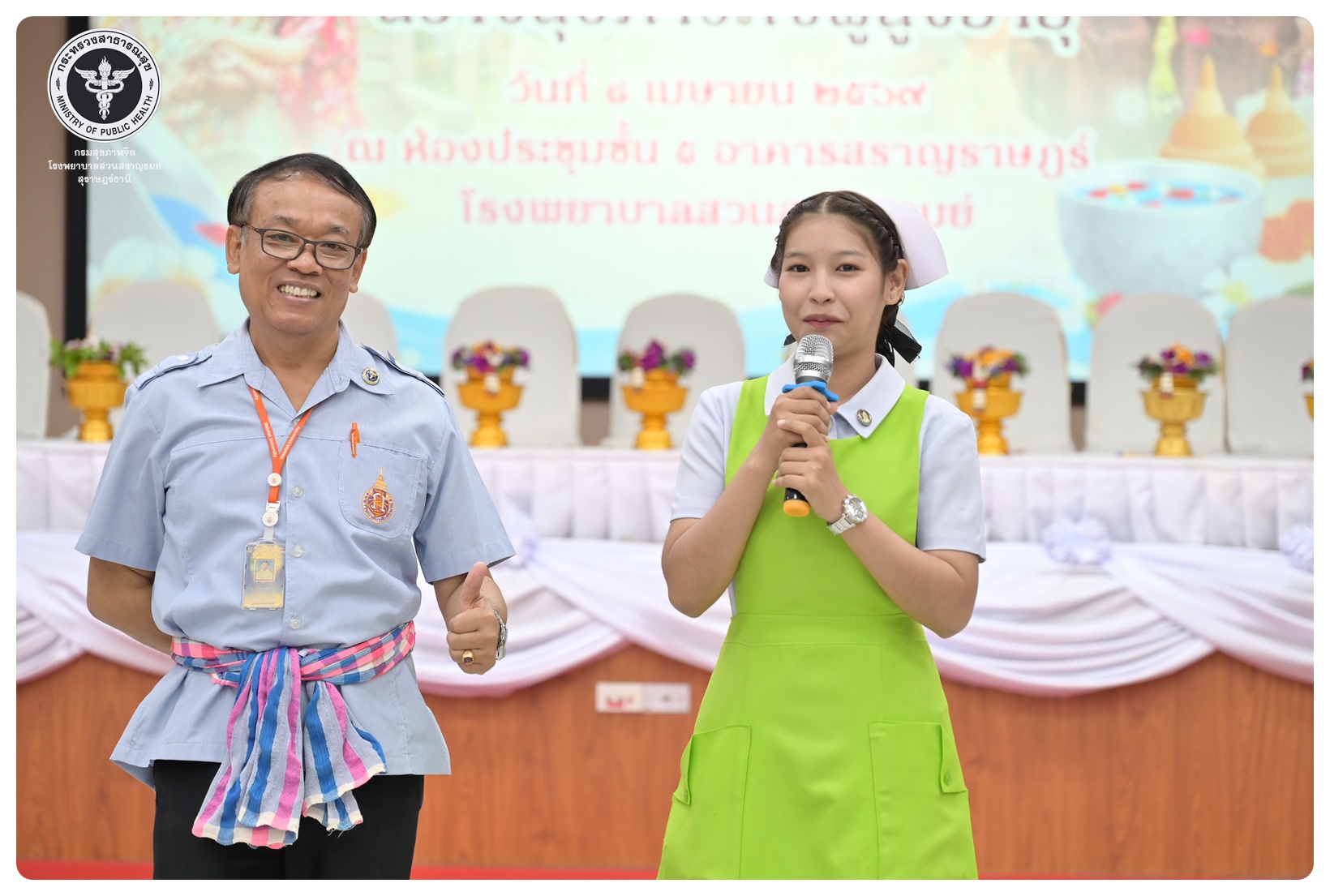 นายแพทย์ธิติพันธ์ ธานีรัตน์ ผู้อำนวยการโรงพยาบาลสวนสราญรมย์ มอบหมายให้ นายปราโมทย์ ศรีโพธิ์ชัย รองผู้อำนวยการฝ่ายพัฒนาคุณภาพองค์กรและความเป็นเลิศ เป็นประธานในพิธีเปิดโครงการพัฒนาเสริมสร้างความรอบรู้สุขภาพจิต โรงพยาบาลสวนสราญรมย์ กิจกรรมที่ ๓ กิจกรรมสืบสานประเพณีไทยสร้างสุขภาวะใจผู้สูงวัย โดยมี ดร.อุไรวรรณ เกิดสังข์ นักสังคมสงเคราะห์เชี่ยวชาญ เป็นผู้กล่าวรายงาน ภายใต้ความร่วมมือของคณะกรรมการพัฒนาความรอบรู้สุขภาพจิต และคณะกรรมการขับเคลื่อนงานสูงอายุ มีวัตถุประสงค์เพื่อแสดงถึงความรัก ความกตัญญู ความเคารพนับถือ และอนุรักษ์วัฒนธรรม ประเพณีสงกรานต์ไทยอันดีงามสืบไป โดยจัดกิจกรรมสรงน้ำพระ รดน้ำขอพรผู้สูงอายุ และแลกเปลี่ยนเรียนรู้ ผ่านบูทกิจกรรมชะลอเสื่อม จำนวน 5 บูท ผู้เข้าร่วมกิจกรรม ได้แก่ สมาชิกชมรมผู้สูงอายุต่าง ๆ ในจังหวัดสุราษฎร์ธานี นักศึกษาพยาบาลคณะพยาบาลศาสตร์ มหาวิทยาลัยราชภัฏสุราษฎร์ธานีและบุคลากรโรงพยาบาลสวนสราญรมย์ จำนวน 150 คน ณ ห้องประชุมชั้น 5 อาคารสราญราษฎร์ โรงพยาบาลสวนสราญรมย์ อำเภอพุนพิน จังหวัดสุราษฎร์ธานี