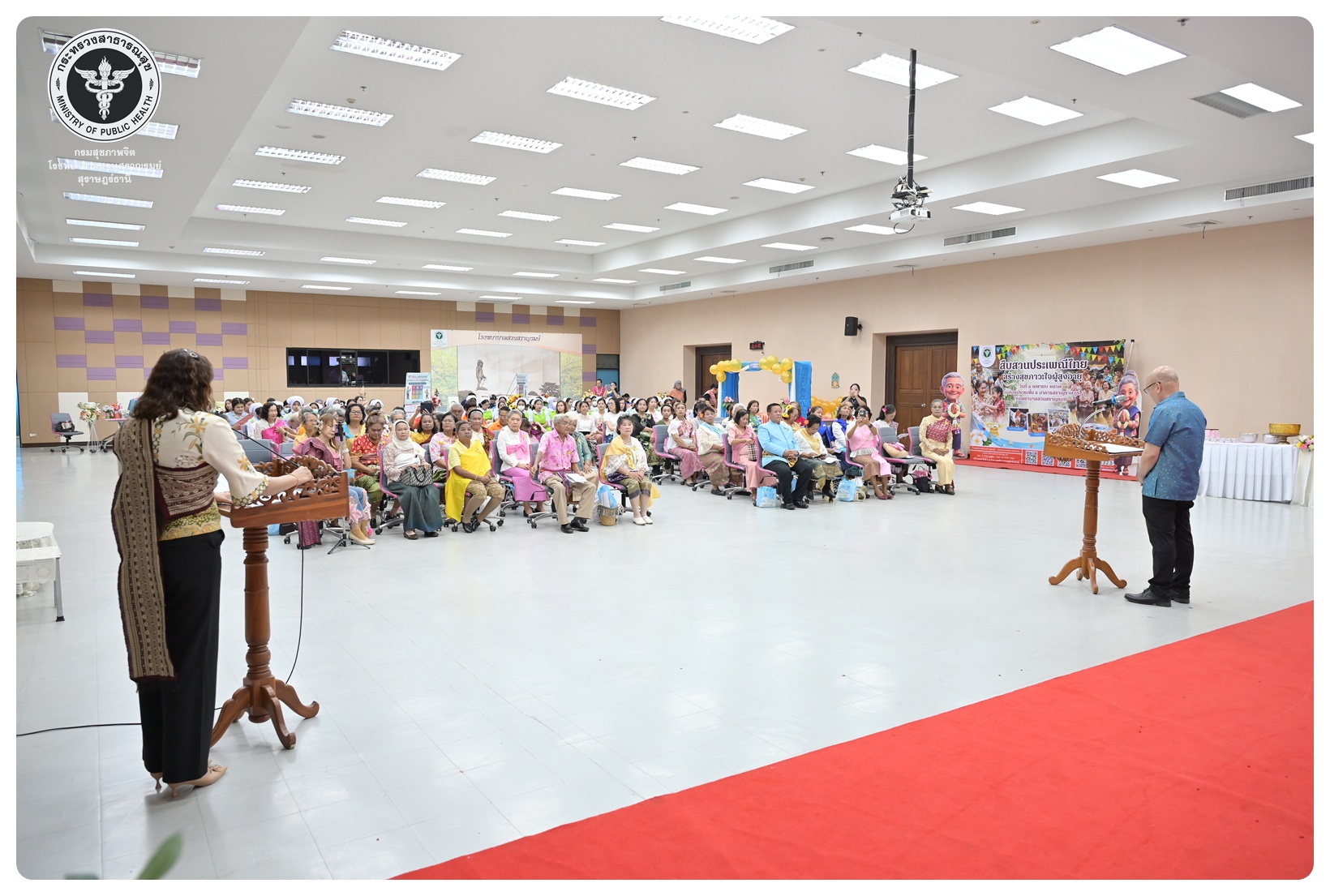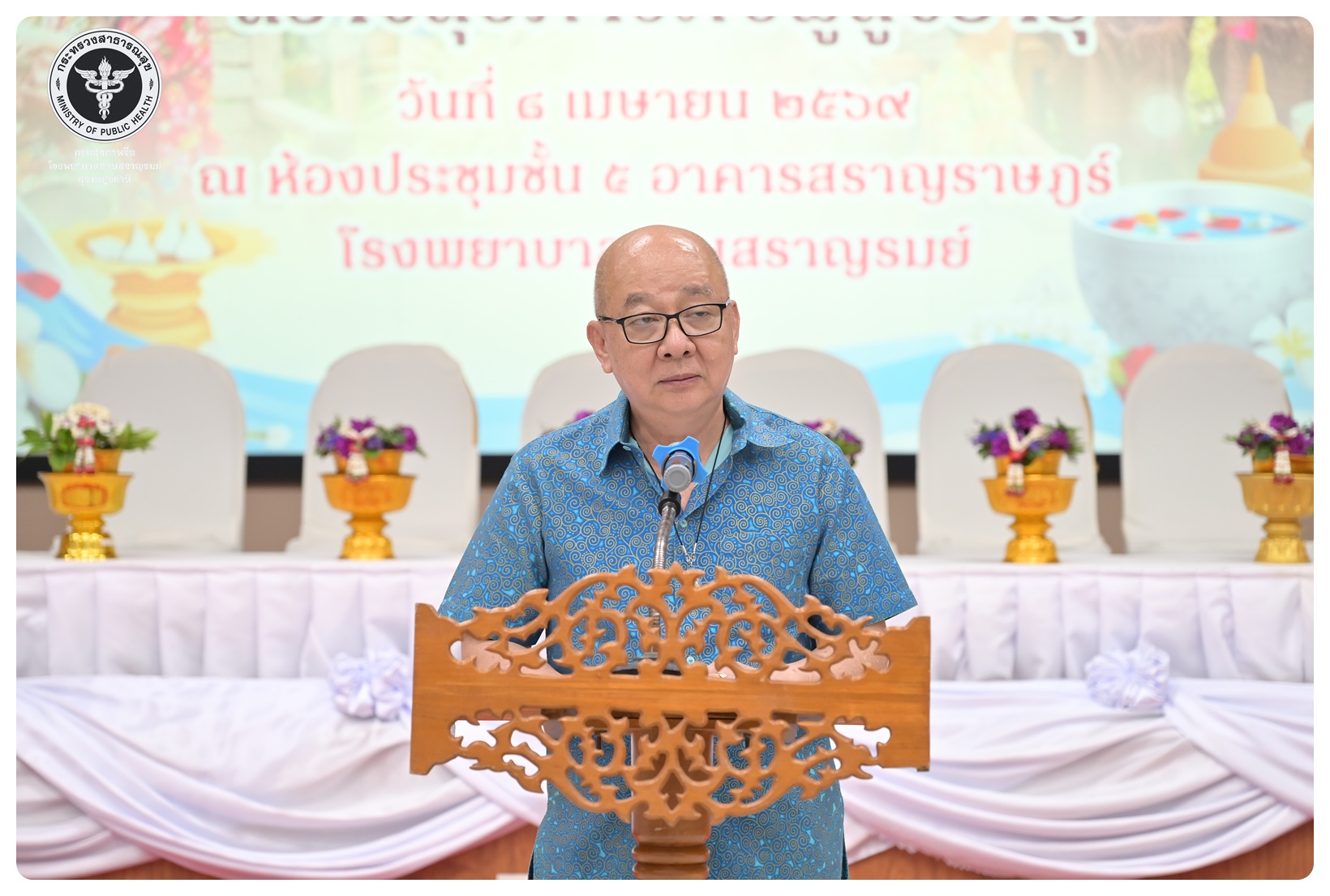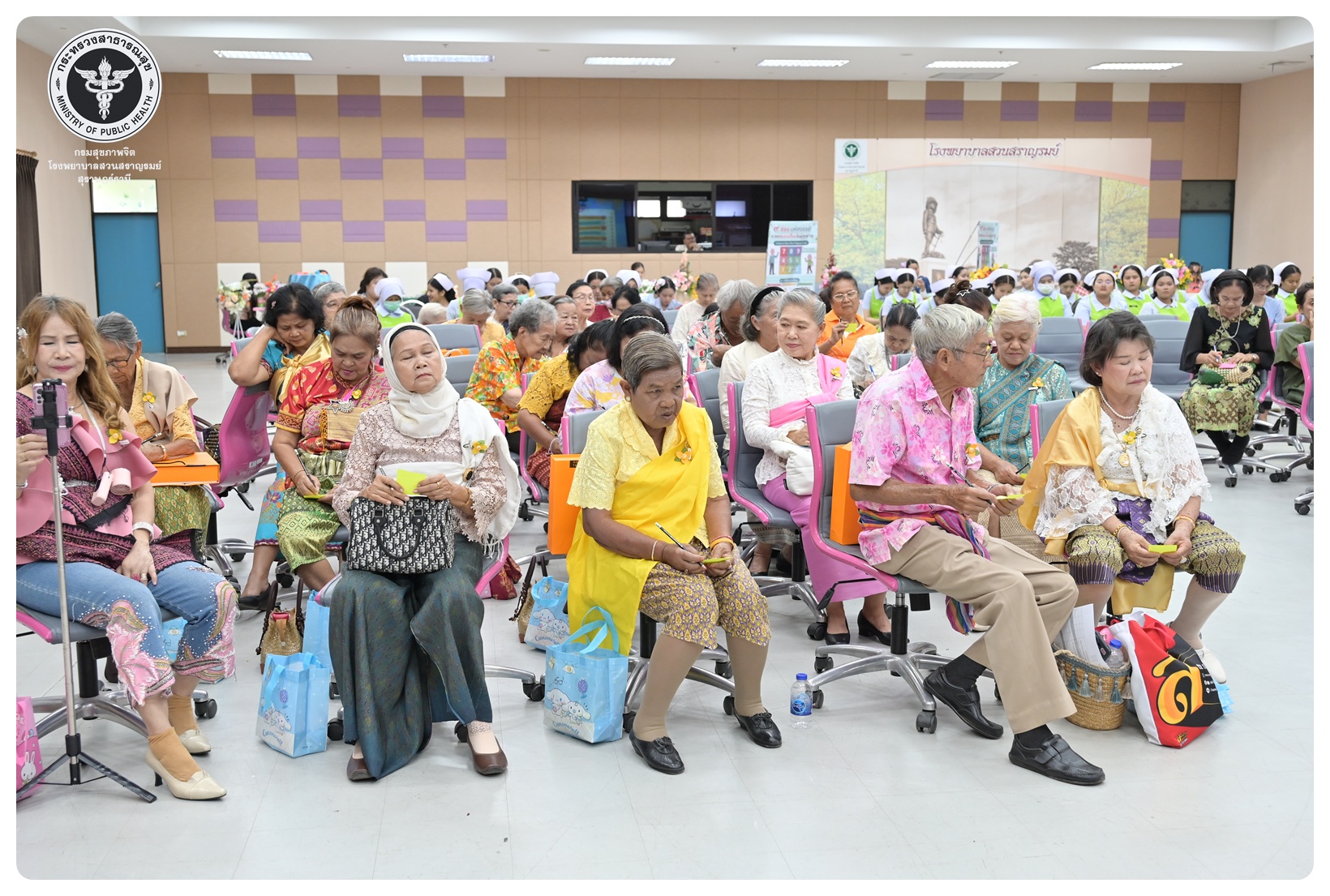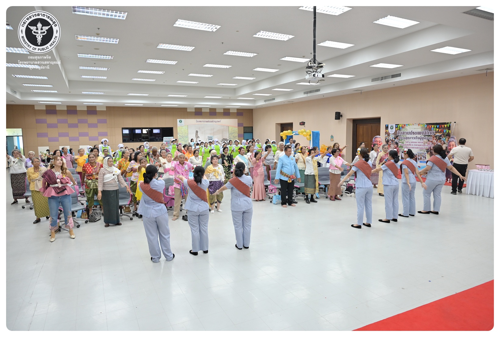 นายแพทย์ธิติพันธ์ ธานีรัตน์ ผู้อำนวยการโรงพยาบาลสวนสราญรมย์ มอบหมายให้ นายปราโมทย์ ศรีโพธิ์ชัย รองผู้อำนวยการฝ่ายพัฒนาคุณภาพองค์กรและความเป็นเลิศ เป็นประธานในพิธีเปิดโครงการพัฒนาเสริมสร้างความรอบรู้สุขภาพจิต โรงพยาบาลสวนสราญรมย์ กิจกรรมที่ ๓ กิจกรรมสืบสานประเพณีไทยสร้างสุขภาวะใจผู้สูงวัย โดยมี ดร.อุไรวรรณ เกิดสังข์ นักสังคมสงเคราะห์เชี่ยวชาญ เป็นผู้กล่าวรายงาน ภายใต้ความร่วมมือของคณะกรรมการพัฒนาความรอบรู้สุขภาพจิต และคณะกรรมการขับเคลื่อนงานสูงอายุ มีวัตถุประสงค์เพื่อแสดงถึงความรัก ความกตัญญู ความเคารพนับถือ และอนุรักษ์วัฒนธรรม ประเพณีสงกรานต์ไทยอันดีงามสืบไป โดยจัดกิจกรรมสรงน้ำพระ รดน้ำขอพรผู้สูงอายุ และแลกเปลี่ยนเรียนรู้ ผ่านบูทกิจกรรมชะลอเสื่อม จำนวน 5 บูท ผู้เข้าร่วมกิจกรรม ได้แก่ สมาชิกชมรมผู้สูงอายุต่าง ๆ ในจังหวัดสุราษฎร์ธานี นักศึกษาพยาบาลคณะพยาบาลศาสตร์ มหาวิทยาลัยราชภัฏสุราษฎร์ธานีและบุคลากรโรงพยาบาลสวนสราญรมย์ จำนวน 150 คน ณ ห้องประชุมชั้น 5 อาคารสราญราษฎร์ โรงพยาบาลสวนสราญรมย์ อำเภอพุนพิน จังหวัดสุราษฎร์ธานี