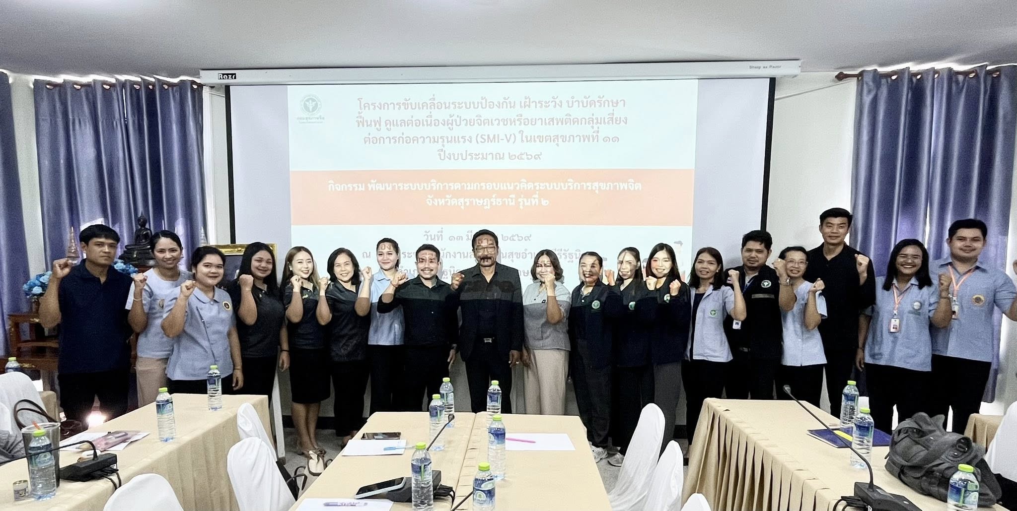 นายแพทย์ธิติพันธ์ ธานีรัตน์ ผู้อำนวยการโรงพยาบาลสวนสราญรมย์ มอบหมายให้ งานสุขภาพจิตและจิตเวชชุมชน จัดประชุมเชิงปฏิบัติการแนวทางคัดกรองและติดตามประชาชน และผู้ป่วยจิตเวชที่มีความเสี่ยงต่อการก่อความรุนแรงในชุมชน จังหวัดสุราษฎร์ธานี รุ่นที่ 2 โดยมี นายบุญธรรม มิ่งแก้ว สาธารณสุขอำเภอคีรีรัฐนิคม เป็นประธานในพิธี มีวัตถุประสงค์เพื่อให้บุคลากรสาธารณสุขมีแนวทางในการค้นหาและคัดกรองผู้ป่วยจิตเวชที่มีความเสี่ยงต่อการก่อความรุนแรงในชุมชน ให้ผู้ป่วยจิตเวชได้เข้าถึงบริการสุขภาพจิต ได้รับการดูแลรักษาอย่างเหมาะสม จนสามารถดูแลตนเองและอยู่ร่วมกับชุมชนได้อย่างปลอดภัย กลุ่มเป้าหมายคือเจ้าหน้าที่โรงพยาบาลส่งเสริมสุขภาพตำบล และอาสาสมัครสาธารณสุข จำนวน 40 คน ณ สำนักงานสาธารณสุขอำเภอคีรีรัฐนิคม อำเภอคีรีรัฐนิคม จังหวัดสุราษฎร์ธานี