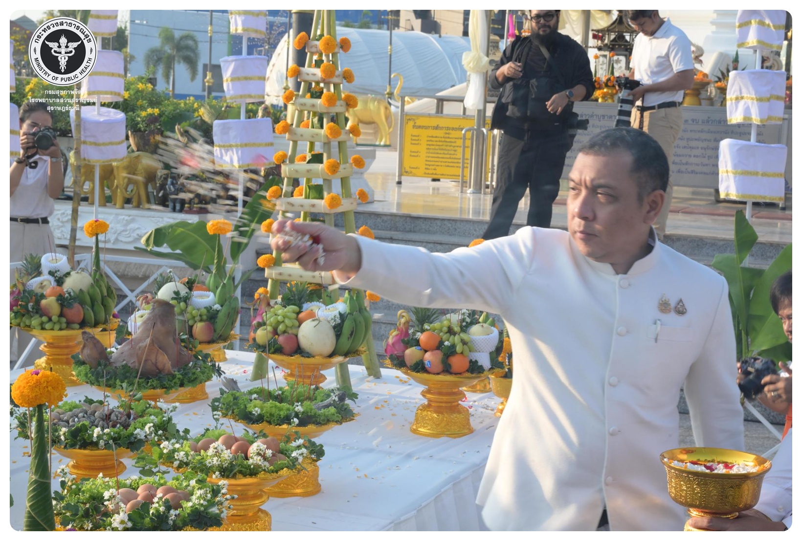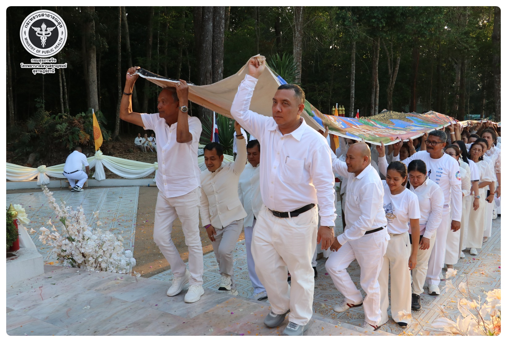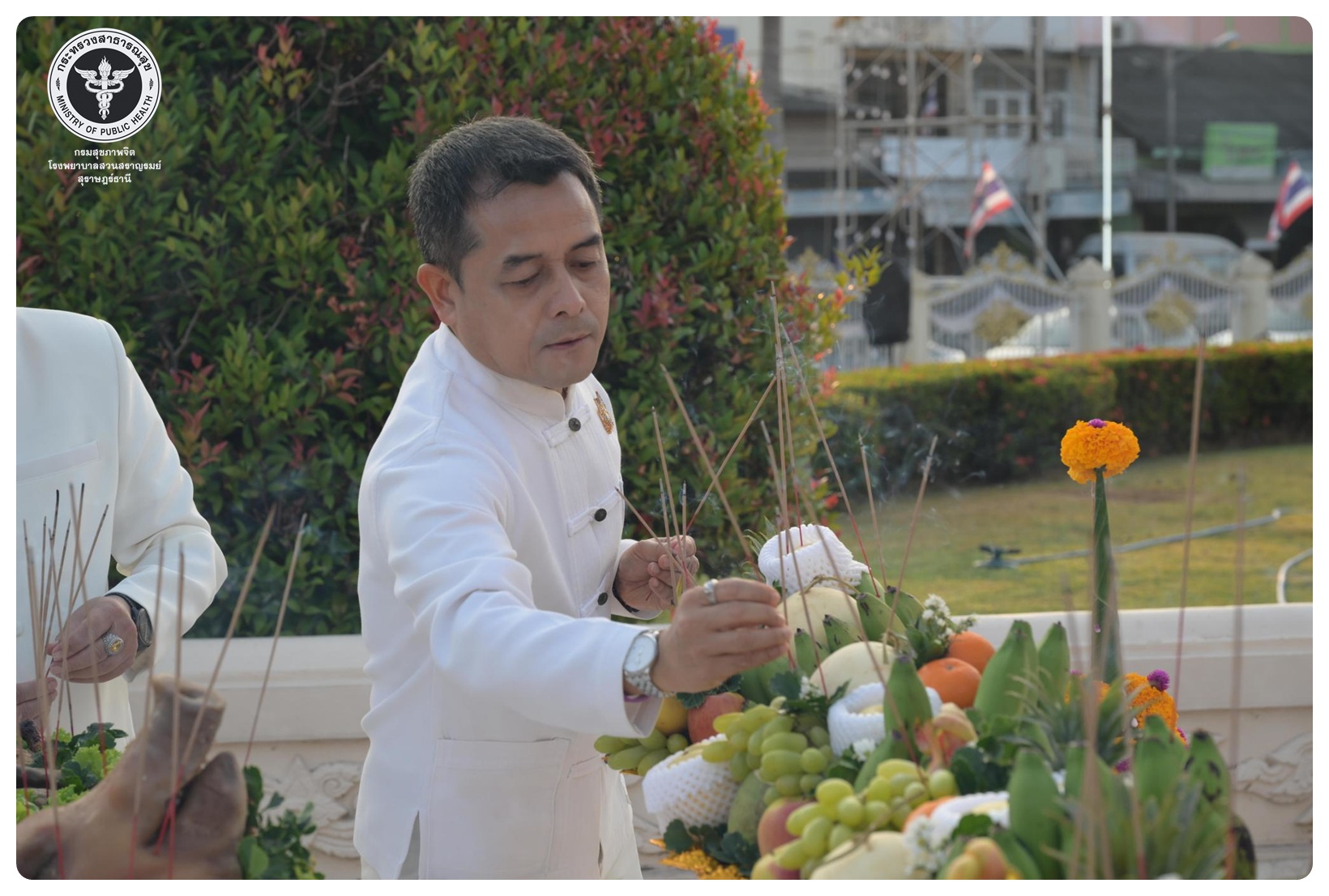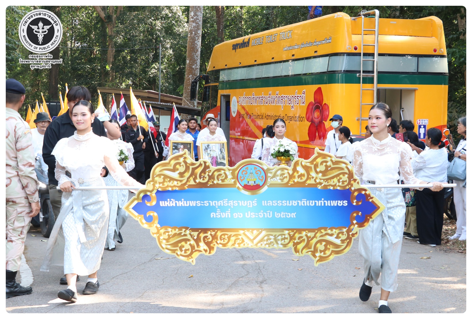 นายแพทย์ธิติพันธ์ ธานีรัตน์ ผู้อำนวยการโรงพยาบาลสวนสราญรมย์ มอบหมายให้ กลุ่มงานบริหารทั่วไป และกลุ่มงานการเงินและบัญชี เข้าร่วมพิธี “แห่ผ้าห่มพระธาตุศรีสุราษฎร์ธานี แลธรรมชาติเขาท่าเพชร” ครั้งที่ ๑๖ ประจำปี ๒๕๖๙ ในระหว่างวันที่ ๒๖ - ๒๗ มีนาคม โดยมี นายจุมพฏ วรรณฉัตรสิริ ผู้ว่าราชการจังหวัดสุราษฎร์ธานี เป็นประธานในพิธีบวงสรวงศาลหลักเมือง พิธีสมโภชผ้าห่มพระธาตุศรีสุราษฎร์ พิธีเชิญผ้าห่มพระธาตุศรีสุราษฎร์ และพิธีเชิญพระบฏห่มพระธาตุศรีสุราษฎร์ พร้อมด้วย หัวหน้าส่วนราชการ นายอำเภอ ทหาร ตำรวจ องค์กรปกครองส่วนท้องถิ่น หน่วยงานภาครัฐ และภาคเอกชน และประชาชนเข้าร่วมพิธี ณ ศาลหลักเมืองสุราษฎร์ธานี อำเภอเมือง จังหวัดสุราษฎร์ธานี และพระธาตุศรีสุราษฎร์ ตำบลมะขามเตี้ย อำเภอเมือง จังหวัดสุราษฎร์ธานี