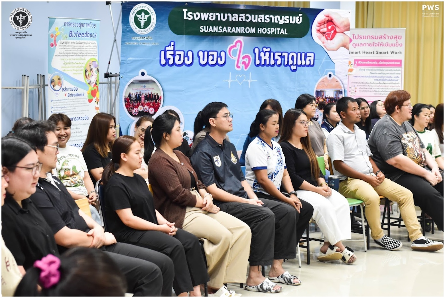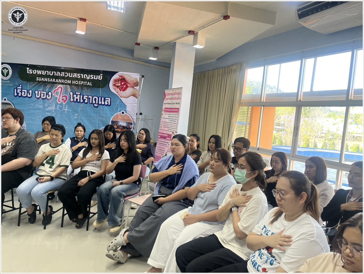 นายแพทย์ธิติพันธ์ ธานีรัตน์ ผู้อำนวยการโรงพยาบาลสวนสราญรมย์ มอบหมายให้ คณะกรรมการพัฒนาความรอบรู้ด้านสุขภาพจิต (Mental health literacy) โรงพยาบาลสวนสราญรมย์ ภายใต้โครงการพัฒนาบุคลากรเพื่อส่งเสริมสุขภาวะและคุณภาพชีวิตในการทำงาน Smart Heart Smart Work ร่วมกับ โรงเรียน มอ. วิทยานุสรณ์ สุราษฎร์ธานี มีวัตถุประสงค์เพื่อให้บุคลากรได้รับการส่งเสริมสุขภาพใจและกายให้สามารถทำงานได้อย่างมีความสุข อีกทั้งยังสร้างสัมพันธภาพที่ดีในโรงเรียนผ่านกิจกรรมที่เน้นการสื่อสารและการทำงานร่วมกัน ซึ่งประกอบด้วยกิจกรรมย่อย Smart Heart: สร้างเสริมสุขภาพใจสู่การทำงานที่มีความสุข และ Smart Work: การฟังด้วยหัวใจ ให้คำปรึกษาเป็นของบุคลากร กลุ่มเป้าหมาย คือ บุคลากรโรงเรียน มอ.วิทยานุสรณ์ สุราษฎร์ธานี จำนวน 88 คน ณ ห้องประชุม 222 โรงเรียน มอ.วิทยานุสรณ์ สุราษฎร์ธานี อำเภอเมืองสุราษฎร์ธานี จังหวัดสุราษฎร์ธานี