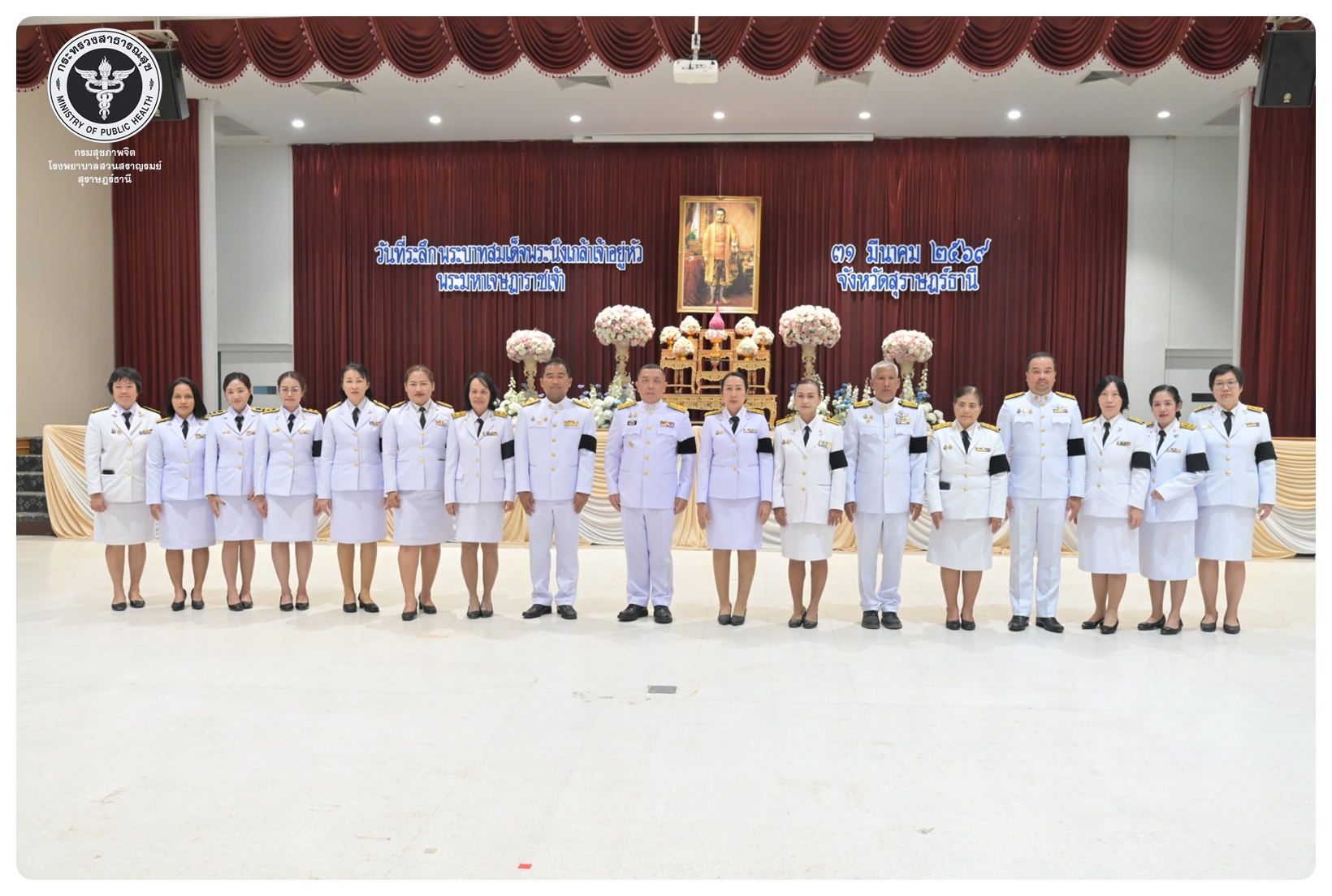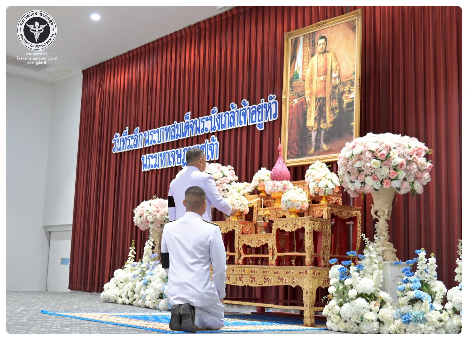 นายแพทย์ธิติพันธ์ ธานีรัตน์ ผู้อำนวยการโรงพยาบาลสวนสราญรมย์ มอบหมายให้ นางขนิษฐา ด่านธีรวนิชย์ นักสังคมสงเคราะห์ชำนาญการพิเศษ และบุคลากรโรงพยาบาลสวนสราญรมย์ เข้าร่วมพิธี วันที่ระลึกพระบาทสมเด็จพระนั่งเกล้าเจ้าอยู่หัว พระมหาเจษฎาราชเจ้า โดยมี นายจุมพฏ วรรณฉัตรสิริ ผู้ว่าราชการจังหวัดสุราษฎร์ธานี เป็นประธานในพิธี พร้อมด้วยหัวหน้าส่วนราชการทหาร ตำรวจ หน่วยงานภาครัฐหน่วยงานรัฐวิสาหกิจ องค์กรปกครองส่วนท้องถิ่น องค์กรอิสระ ผู้แทนสมาคม องค์กรวิชาชีพ เข้าร่วมกิจกรรมอย่างพร้อมเพรียงกัน เพื่อน้อมรำลึกในพระมหากรุณาธิคุณอันหาที่สุดมิได้ ณ อาคารศูนย์กลางสัมมนาภาคใต้ตอนบน ศาลากลางจังหวัดสุราษฎร์ธานี อำเภอเมือง จังหวัดสุราษฎร์ธานี
