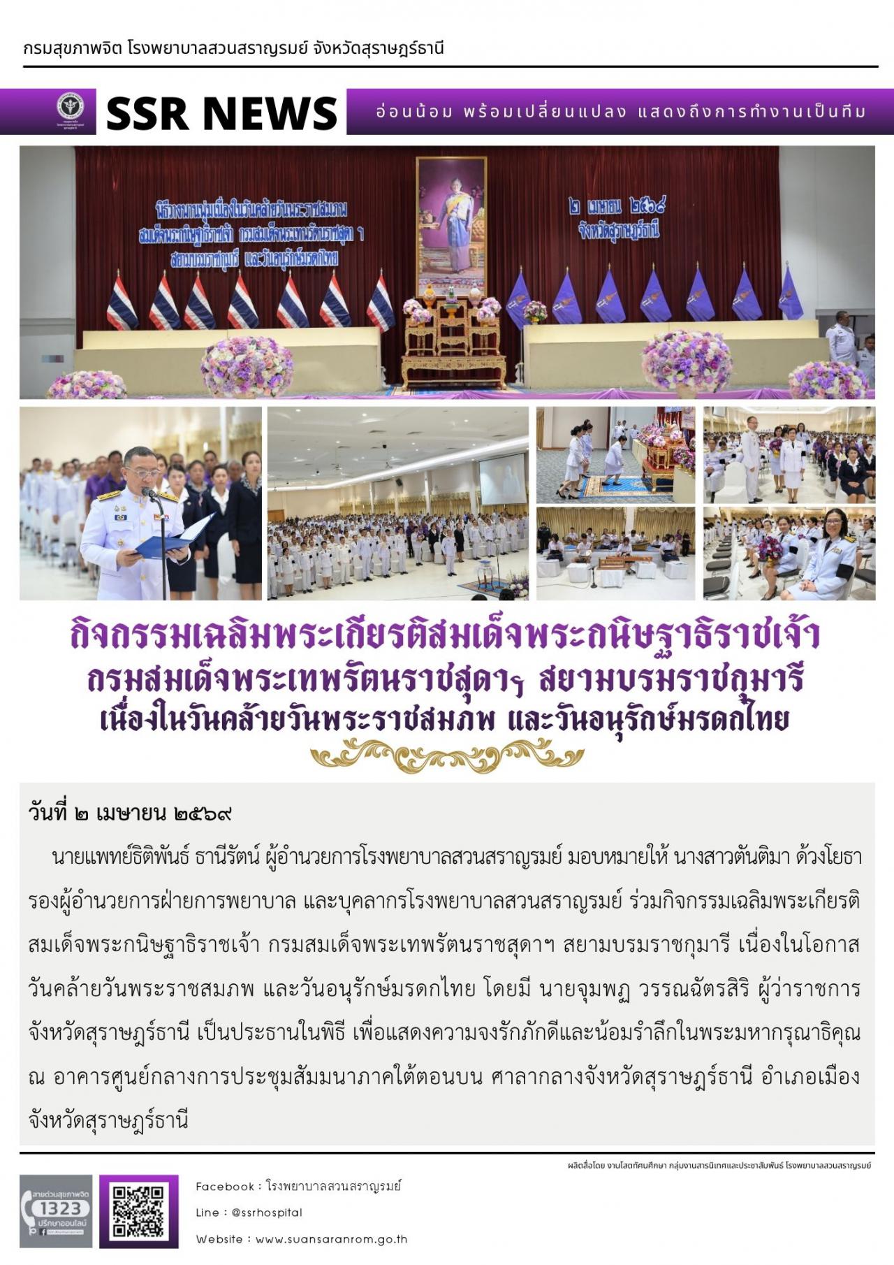 นายแพทย์ธิติพันธ์ ธานีรัตน์ ผู้อำนวยการโรงพยาบาลสวนสราญรมย์ มอบหมายให้ นางสาวจันทร์จิรา ธวัชสุวรรณ รองผู้อำนวยการฝ่ายบริหาร เป็นประธานในพิธีเปิดโครงการประชุมเชิงปฏิบัติการเพิ่มประสิทธิภาพการพัฒนาสิ่งแวดล้อมและความปลอดภัยในโรงพยาบาล กิจกรรมที่ 1 ประชุมเชิงปฏิบัติการให้ความรู้ การจัดการสิ่งแวดล้อมให้ปลอดภัย ครั้งที่ 1 และกิจกรรม Big Cleaning Day โดยมี นายสมศักดิ์ ล่องเพ็ง หัวหน้ากลุ่มงานบริหารทั่วไป เป็นผู้กล่าวรายงาน มีวัตถุประสงค์เพื่อให้ตระหนักถึงความสำคัญต่อการบริหารจัดการสิ่งแวดล้อม สร้างความปลอดภัยแก่ผู้ป่วย และบุคลากรที่มาปฏิบัติงาน ผู้เข้าร่วมประกอบด้วยบุคลากรโรงพยาบาลสวนสราญรมย์ สถาบันสุขภาพจิตเด็กและวัยรุ่นภาคใต้ และศูนย์สุขภาพจิตที่ 11 จำนวนทั้งสิ้น 200 คน ณ ห้องประชุมชั้นออดิทอเรียม 5 อาคารสราญราษฎร์ โรงพยาบาลสวนสราญรมย์ และบริเวณเขตบ้านพักของโรงพยาบาลสวนสราญรมย์ อำเภอพุนพิน จังหวัดสุราษฎร์ธานี