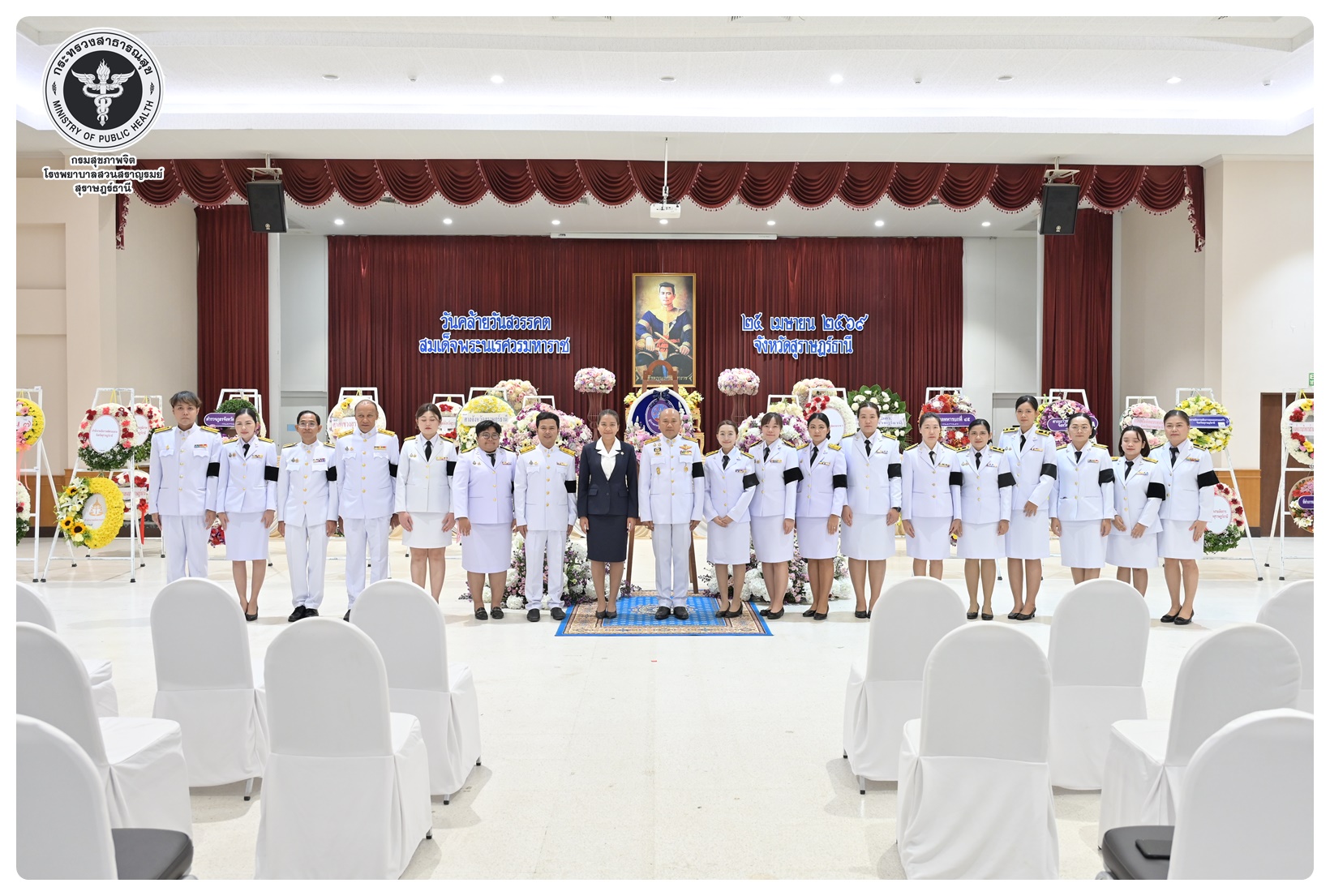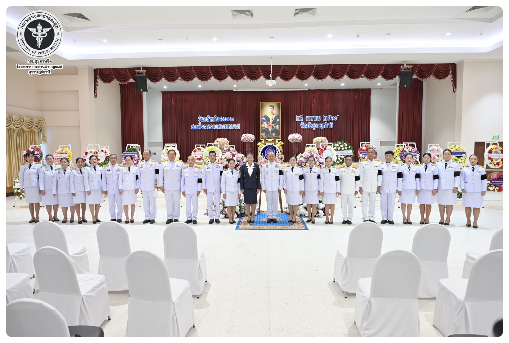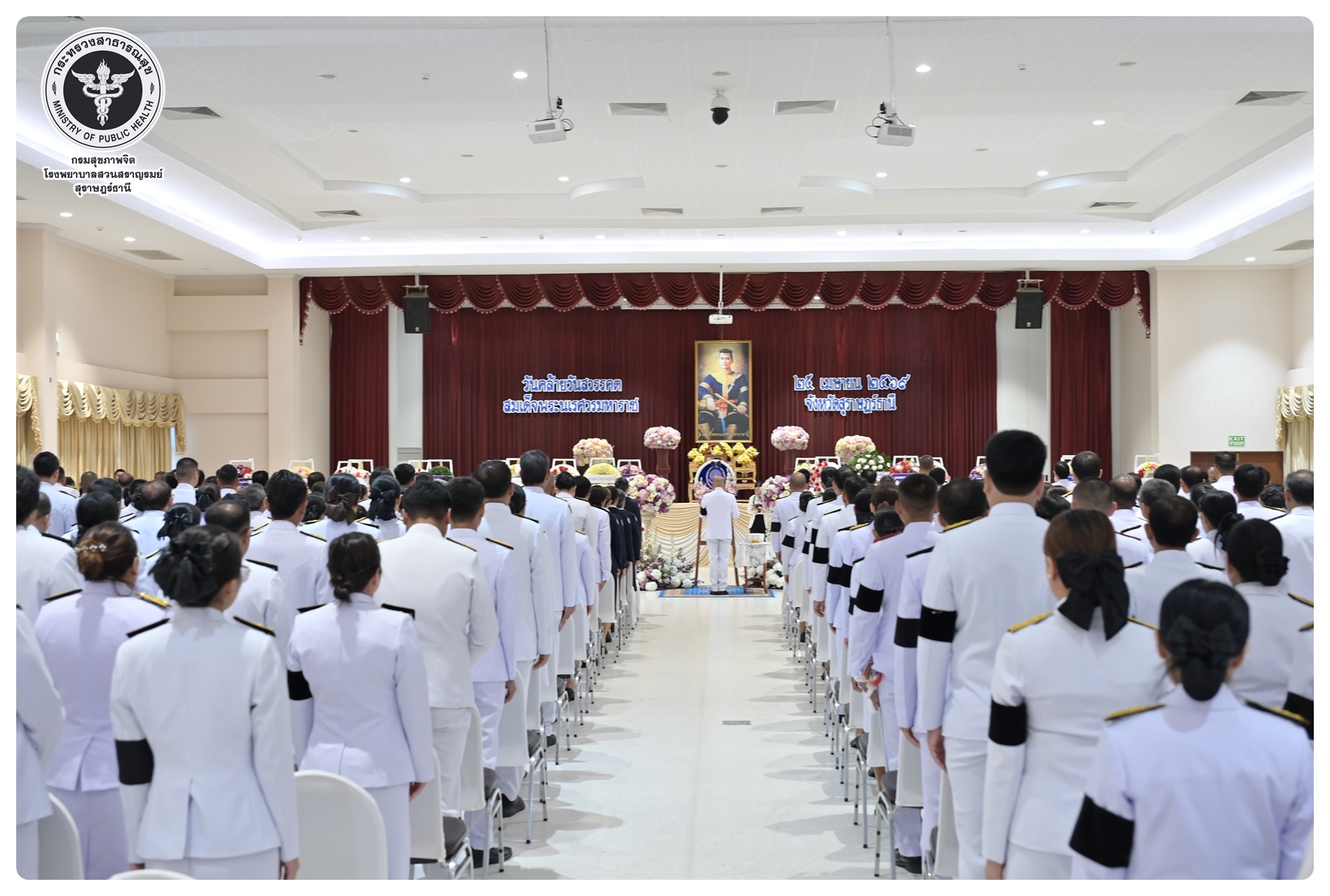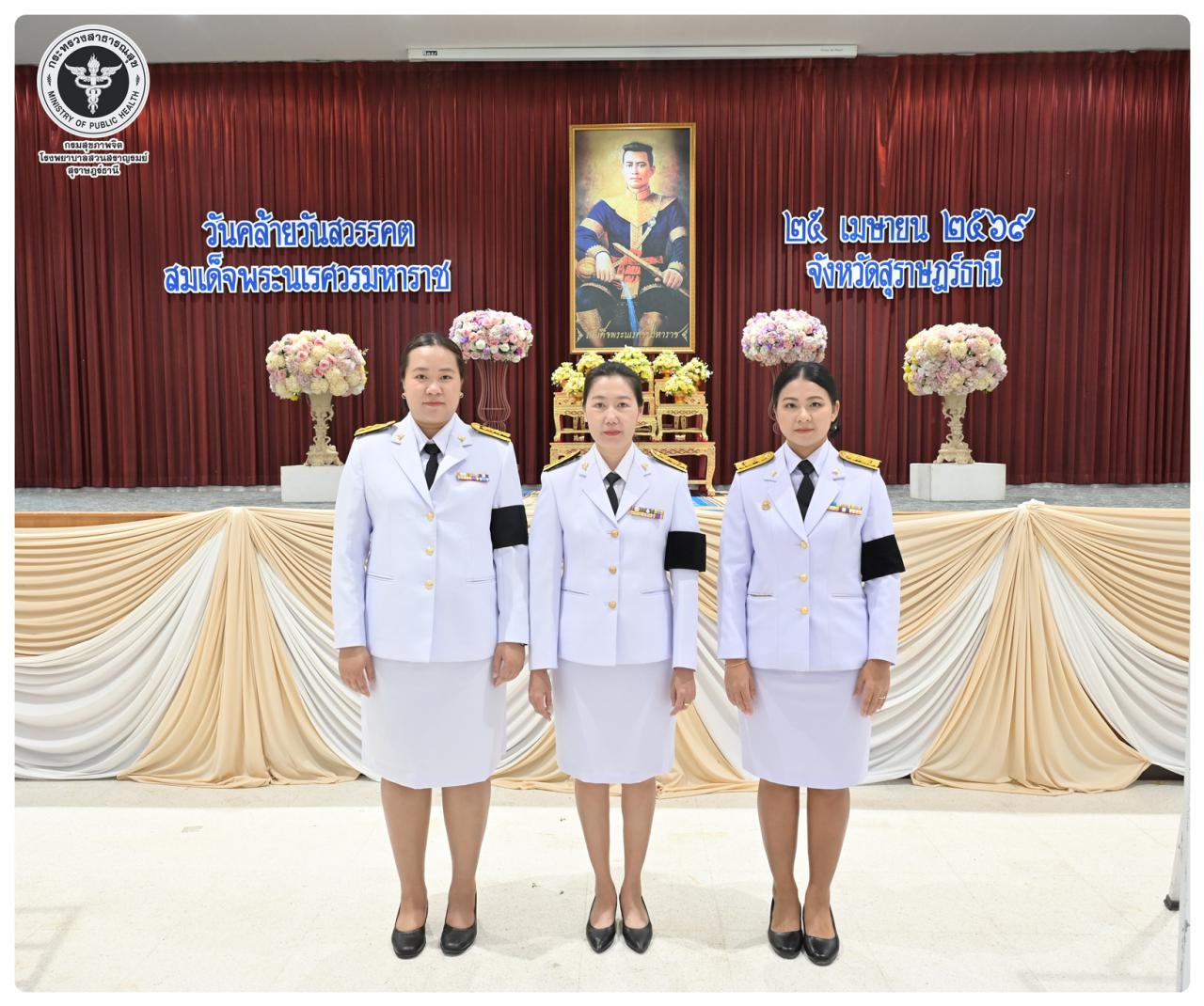 นายแพทย์ธิติพันธ์ ธานีรัตน์ ผู้อำนวยการโรงพยาบาลสวนสราญรมย์ มอบหมายให้ นางยุวดี เชื้อชิตวงษ์ นักรังสีการแพทย์ชำนาญการ และบุคลากรโรงพยาบาลสวนสราญรมย์ ร่วมพิธีวางพวงมาลาถวายราชสักการะ และกล่าวคำถวายอาศิรวาทราชสดุดีเฉลิมพระเกียรติ เนื่องในวันคล้ายวันสวรรคต สมเด็จพระนเรศวรมหาราช ประจำปี ๒๕๖๘ โดยมี นายกล้าณรงค์ ยุติธรรม รองผู้ว่าราชการจังหวัดสุราษฎร์ธานี เป็นประธานในพิธี พร้อมด้วยหัวหน้าส่วนราชการทหาร ตำรวจ หน่วยงานภาครัฐ หน่วยงานรัฐวิสาหกิจ องค์กรปกครองส่วนท้องถิ่น องค์กรอิสระ องค์กรวิชาชีพ และผู้แทนสมาคม เข้าร่วมกิจกรรมอย่างพร้อมเพรียงกัน เพื่อน้อมรำลึกในพระมหากรุณาธิคุณอันหาที่สุดมิได้ ณ อาคารศูนย์กลาง การประชุมสัมมนาภาคใต้ตอนบน ศาลากลางจังหวัดสุราษฎร์ธานี อำเภอเมือง จังหวัดสุราษฎร์ธานี