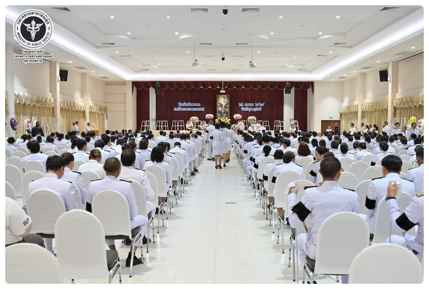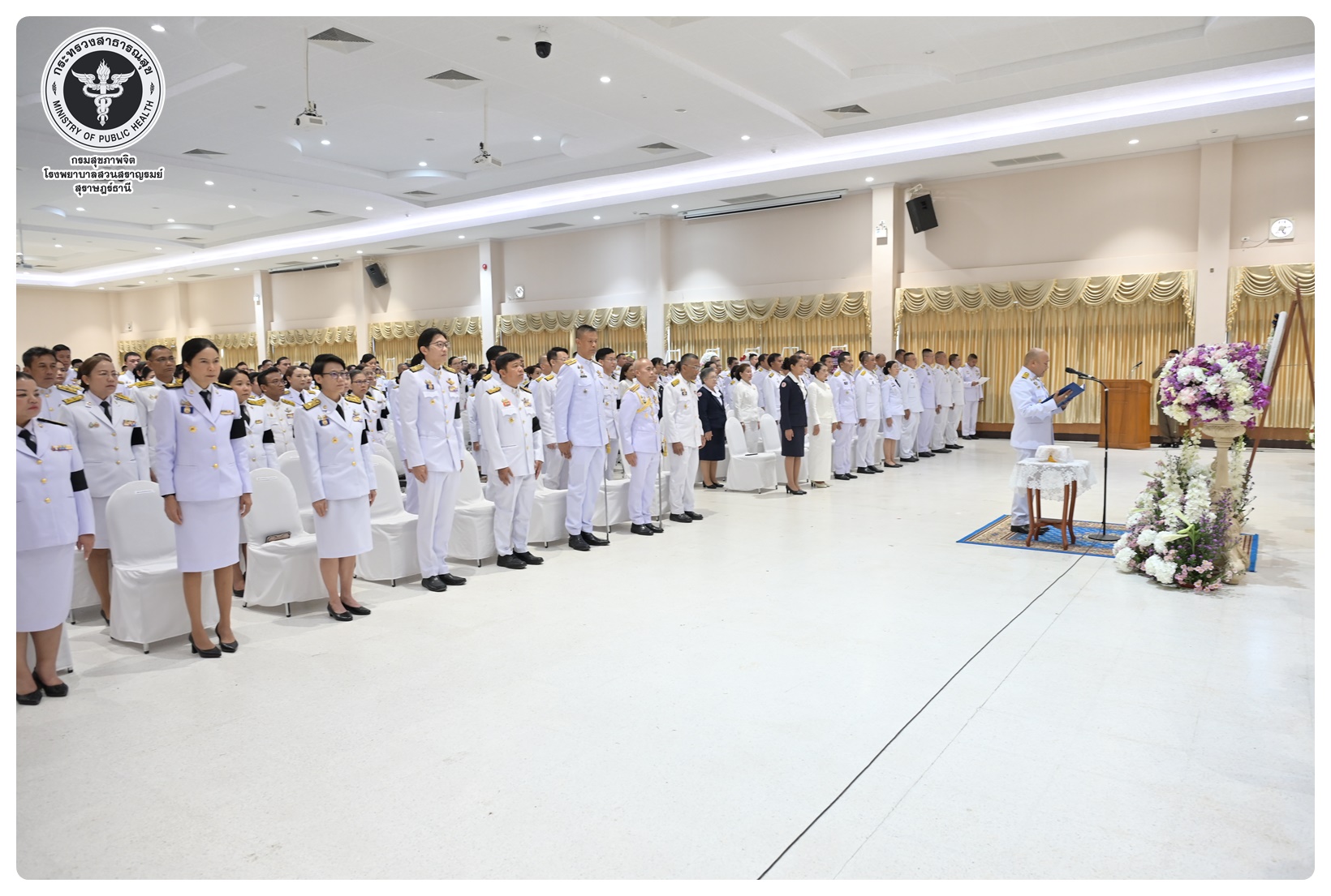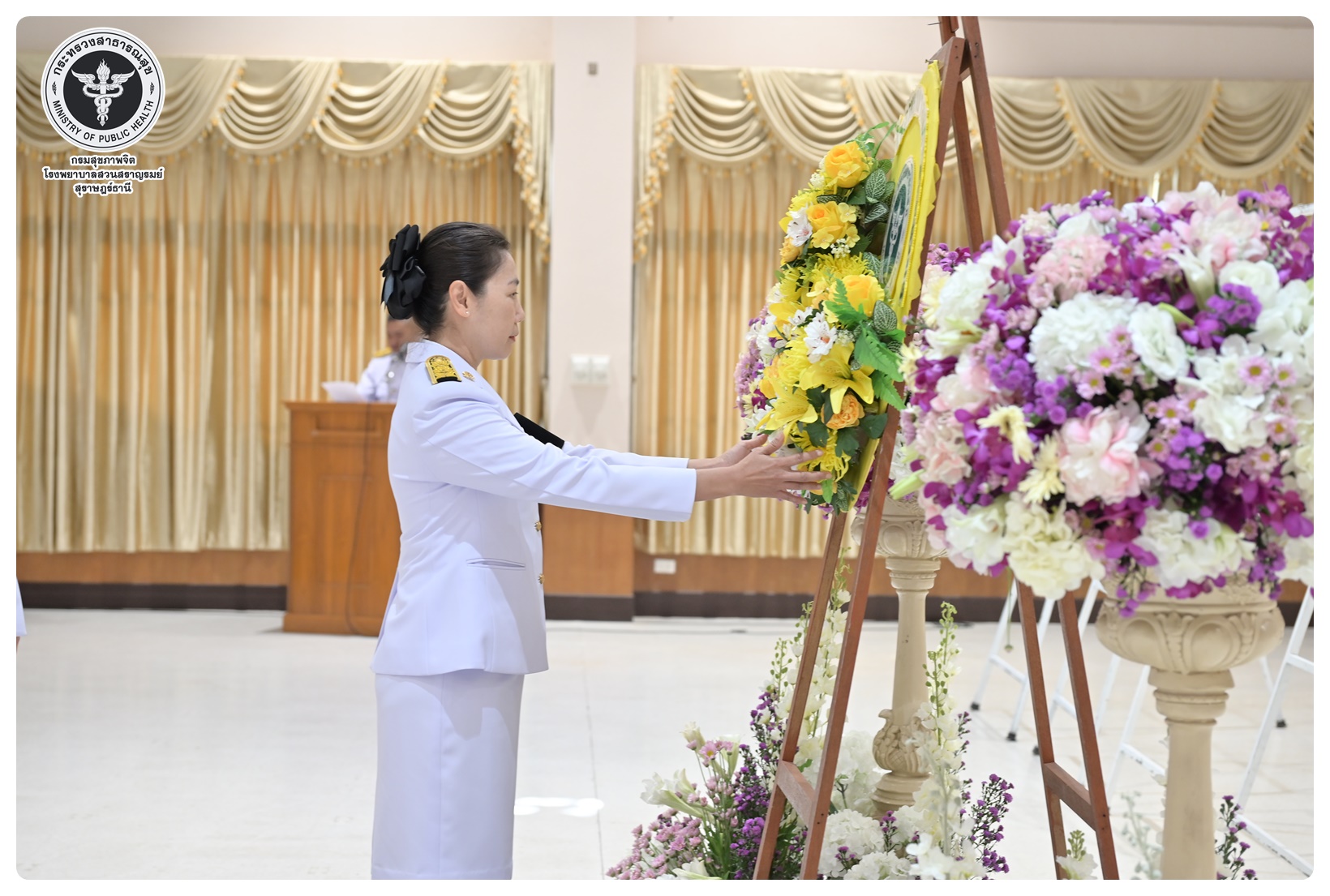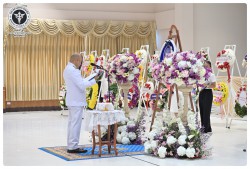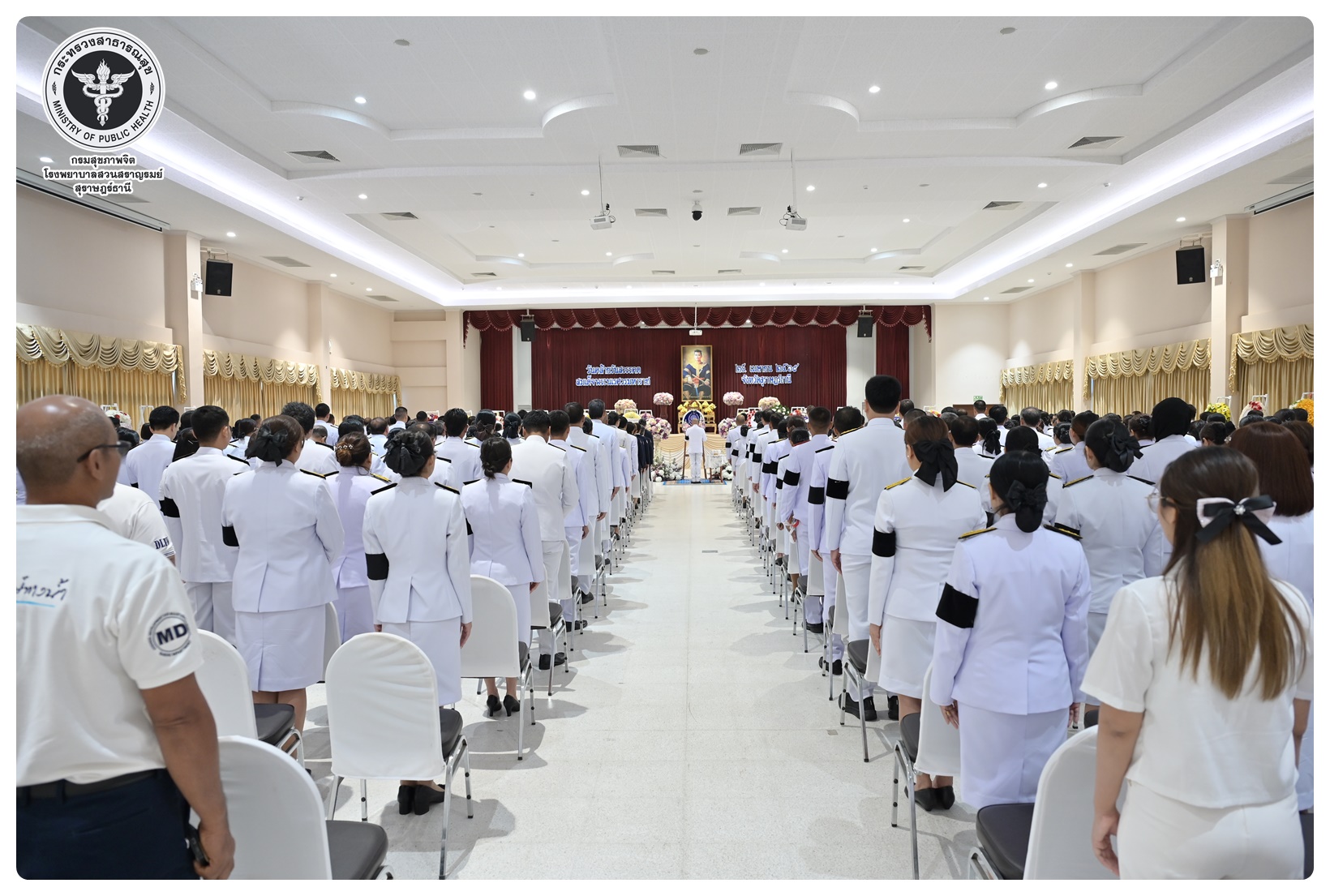 นายแพทย์ธิติพันธ์ ธานีรัตน์ ผู้อำนวยการโรงพยาบาลสวนสราญรมย์ มอบหมายให้ นางยุวดี เชื้อชิตวงษ์ นักรังสีการแพทย์ชำนาญการ และบุคลากรโรงพยาบาลสวนสราญรมย์ ร่วมพิธีวางพวงมาลาถวายราชสักการะ และกล่าวคำถวายอาศิรวาทราชสดุดีเฉลิมพระเกียรติ เนื่องในวันคล้ายวันสวรรคต สมเด็จพระนเรศวรมหาราช ประจำปี ๒๕๖๘ โดยมี นายกล้าณรงค์ ยุติธรรม รองผู้ว่าราชการจังหวัดสุราษฎร์ธานี เป็นประธานในพิธี พร้อมด้วยหัวหน้าส่วนราชการทหาร ตำรวจ หน่วยงานภาครัฐ หน่วยงานรัฐวิสาหกิจ องค์กรปกครองส่วนท้องถิ่น องค์กรอิสระ องค์กรวิชาชีพ และผู้แทนสมาคม เข้าร่วมกิจกรรมอย่างพร้อมเพรียงกัน เพื่อน้อมรำลึกในพระมหากรุณาธิคุณอันหาที่สุดมิได้ ณ อาคารศูนย์กลาง การประชุมสัมมนาภาคใต้ตอนบน ศาลากลางจังหวัดสุราษฎร์ธานี อำเภอเมือง จังหวัดสุราษฎร์ธานี