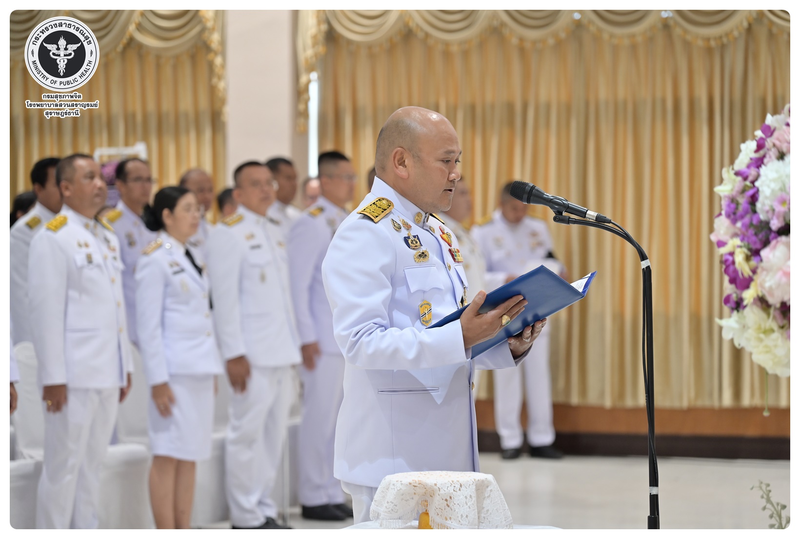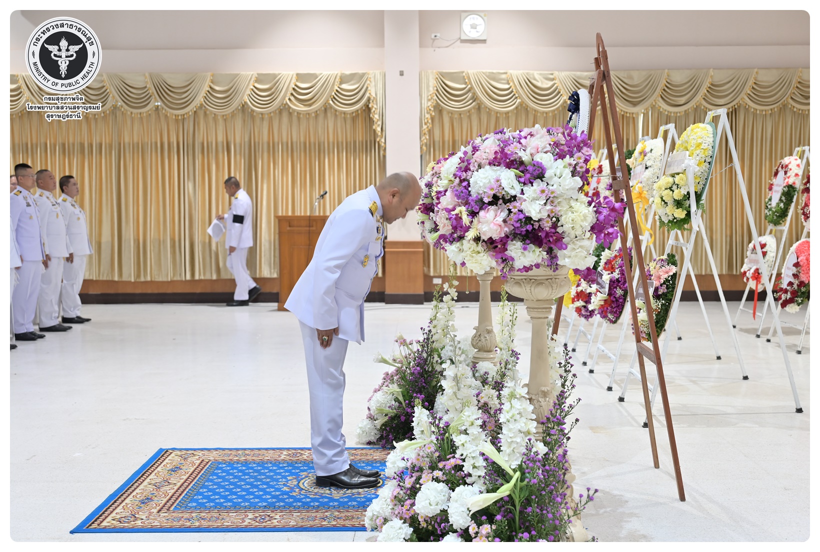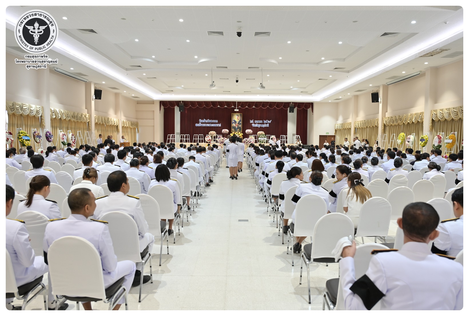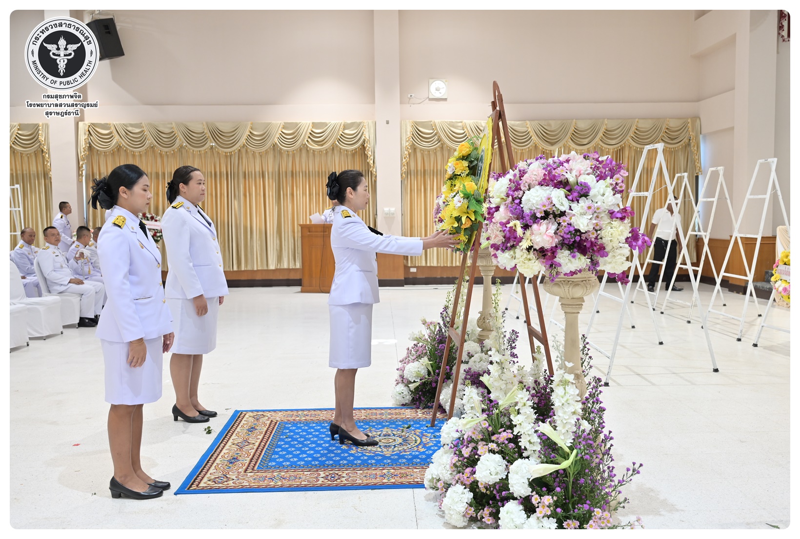นายแพทย์ธิติพันธ์ ธานีรัตน์ ผู้อำนวยการโรงพยาบาลสวนสราญรมย์ มอบหมายให้ นางยุวดี เชื้อชิตวงษ์ นักรังสีการแพทย์ชำนาญการ และบุคลากรโรงพยาบาลสวนสราญรมย์ ร่วมพิธีวางพวงมาลาถวายราชสักการะ และกล่าวคำถวายอาศิรวาทราชสดุดีเฉลิมพระเกียรติ เนื่องในวันคล้ายวันสวรรคต สมเด็จพระนเรศวรมหาราช ประจำปี ๒๕๖๘ โดยมี นายกล้าณรงค์ ยุติธรรม รองผู้ว่าราชการจังหวัดสุราษฎร์ธานี เป็นประธานในพิธี พร้อมด้วยหัวหน้าส่วนราชการทหาร ตำรวจ หน่วยงานภาครัฐ หน่วยงานรัฐวิสาหกิจ องค์กรปกครองส่วนท้องถิ่น องค์กรอิสระ องค์กรวิชาชีพ และผู้แทนสมาคม เข้าร่วมกิจกรรมอย่างพร้อมเพรียงกัน เพื่อน้อมรำลึกในพระมหากรุณาธิคุณอันหาที่สุดมิได้ ณ อาคารศูนย์กลาง การประชุมสัมมนาภาคใต้ตอนบน ศาลากลางจังหวัดสุราษฎร์ธานี อำเภอเมือง จังหวัดสุราษฎร์ธานี