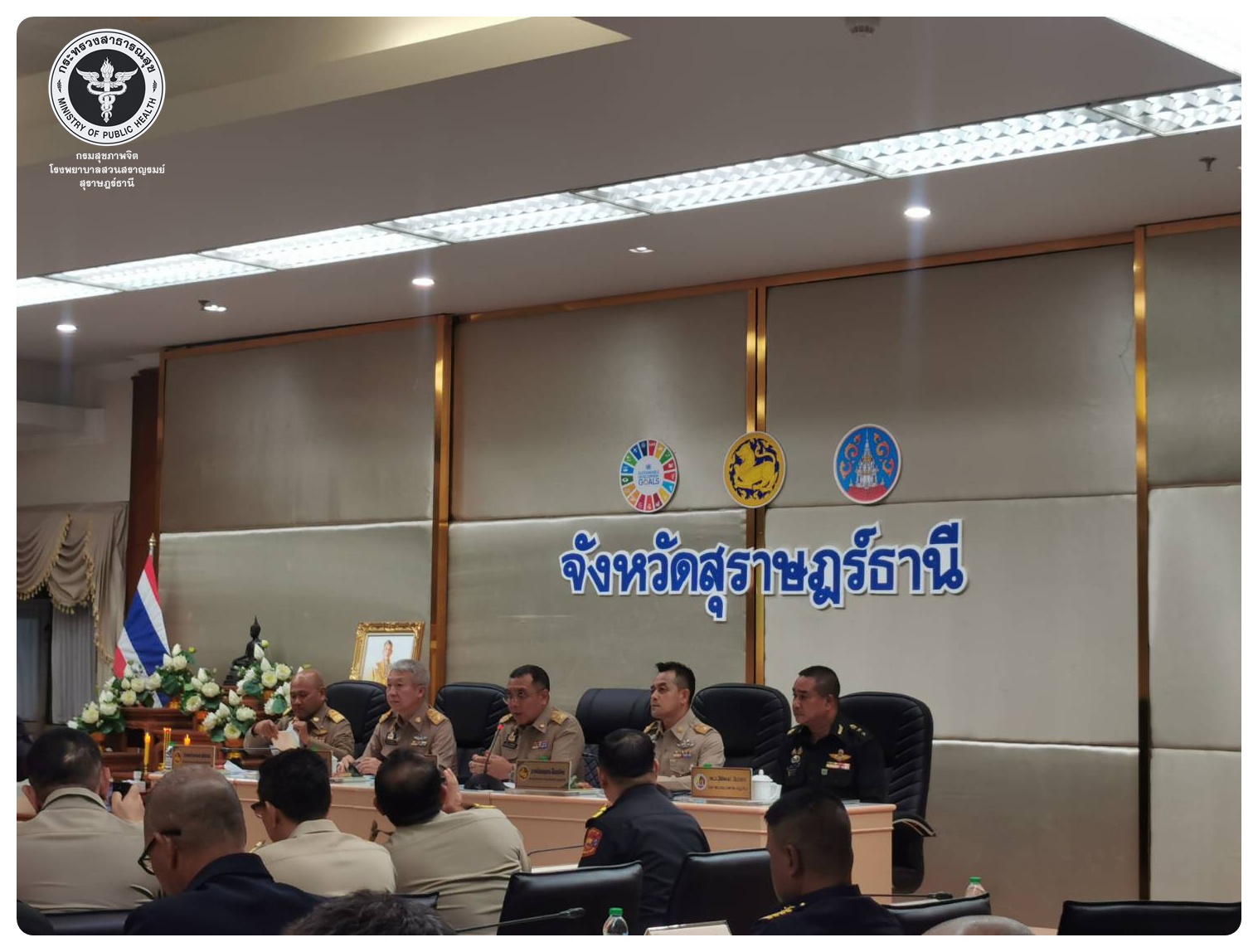 นายแพทย์ธิติพันธ์ ธานีรัตน์ ผู้อำนวยการโรงพยาบาลสวนสราญรมย์ มอบหมายให้ นางสาวจันทร์จิรา ธวัชสุวรรณ รองผู้อำนวยการฝ่ายบริหาร เข้าร่วมประชุมหัวหน้าส่วนราชการจังหวัดสุราษฎร์ธานี เพื่อติดตามผลการปฏิบัติราชการ ประจำเดือนเมษายน 2569 โดยมี นายจุมพฏ วรรณฉัตรสิริ ผู้ว่าราชการจังหวัดสุราษฎร์ธานี เป็นประธานการประชุม พร้อมด้วย รองผู้ว่าราชการจังหวัดสุราษฎร์ธานี หัวหน้าส่วนราชการ ภาครัฐ และภาคเอกชนในจังหวัดสุราษฎร์ธานี เข้าร่วมประชุม ณ ห้องประชุมเมืองคนดี ชั้น 5 ศาลากลางจังหวัดสุราษฎร์ธานี อำเภอเมือง จังหวัดสุราษฎร์ธานี