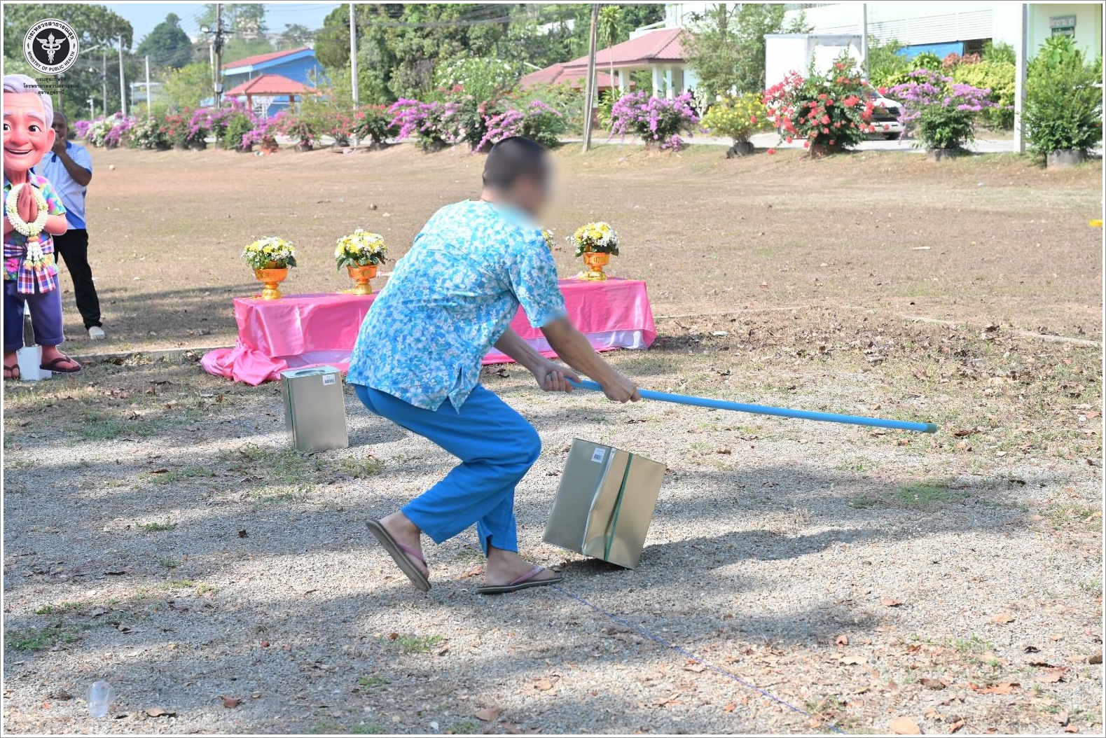 นายแพทย์ธิติพันธ์ ธานีรัตน์ ผู้อำนวยการโรงพยาบาลสวนสราญรมย์ มอบหมายให้ กลุ่มภารกิจการพยาบาลร่วมกับคณะกรรมการขับเคลื่อนยุทธศาสตร์ที่ 2 จัดโครงการ ติดตาม ดูแล ช่วยเหลือ ผู้ผ่านการบำบัดรักษายาเสพติด กิจกรรมที่ 4 ฟื้นฟูทักษะทางสังคมของผู้ป่วยจิตเวช โดยมี นางสาวตันติมา ด้วงโยธา หัวหน้ากลุ่มภารกิจการพยาบาล เป็นประธาน มีวัตถุประสงค์เพื่อฟื้นฟูสมรรถภาพและการมีส่วนร่วมทางสังคมให้สามารถดำเนินชีวิตได้ตามปกติ และยกระดับพัฒนาคุณภาพบริการและแนวทางในการฟื้นฟูผู้ป่วยจิตเวชสารเสพติดในโรงพยาบาลให้มีประสิทธิภาพมากยิ่งขึ้น โดยการดำเนินกิจกรรมแบ่งออกเป็น 2 ช่วง ได้แก่ ช่วงเช้า (08.30 - 12.00 น.) จัดกิจกรรมฟื้นฟูทักษะทางสังคม โดยบูรณาการกับประเพณีวันสงกรานต์ ประกอบด้วย กิจกรรมสรงน้ำพระ และกิจกรรมรดน้ำขอพรผู้สูงอายุ เพื่อส่งเสริมความเคารพนอบน้อม การแสดงออกทางสังคมที่เหมาะสม และการมีส่วนร่วมในวัฒนธรรมไทย ช่วงบ่าย (13.00 - 16.00 น.) จัดกิจกรรมฟื้นฟูทักษะด้านการพักผ่อนและนันทนาการ ผ่านกิจกรรมกีฬาสัมพันธ์สำหรับผู้ป่วยจิตเวช ประกอบด้วย กีฬามหาสนุก กิจกรรมเก้าอี้ดนตรี กิจกรรมปิดตาตีหม้อ และกิจกรรมรำวงร่วมกัน เพื่อส่งเสริมความสนุกสนาน การทำงานเป็นทีม และการสร้างสัมพันธภาพระหว่างผู้ป่วยและบุคลากร จากนั้นดำเนินการสรุปผลคะแนน มอบรางวัล และปิดกิจกรรมอย่างเป็นทางการ กลุ่มเป้าหมายเข้าร่วมกิจกรรมประกอบด้วย ผู้ป่วยจิตเวช จำนวน 90 คน และคณะทำงาน จำนวน 20 คน รวมทั้งสิ้น 110 คน ณ สนามกีฬาหน้าหอผู้ป่วยชาย 3 โรงพยาบาลสวนสราญรมย์ อำเภอพุนพิน จังหวัดสุราษฎร์ธานี