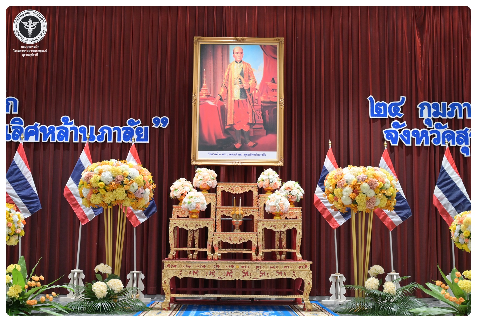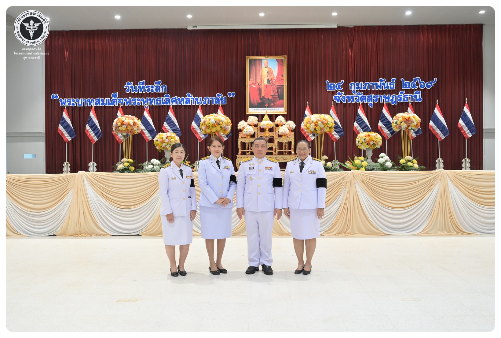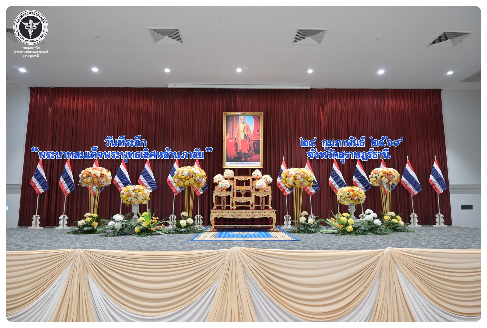 นายแพทย์ธิติพันธ์ ธานีรัตน์ ผู้อำนวยการโรงพยาบาลสวนสราญรมย์ มอบหมายให้ นางวัลยา ภิญญาคง พยาบาลวิชาชีพชำนาญการพิเศษ และบุคลากรโรงพยาบาลสวนสราญรมย์ ร่วมงานรัฐพิธีวันที่ระลึก “พระบาทสมเด็จพระพุทธเลิศหล้านภาลัย” ประจำปี ๒๕๖๙ โดยมี นายจุมพฏ วรรณฉัตรสิริ ผู้ว่าราชการจังหวัดสุราษฎร์ธานี เป็นประธานในพิธี พร้อมด้วยหัวหน้าส่วนราชการ ทหาร ตำรวจ หน่วยงานภาครัฐ หน่วยงานรัฐวิสาหกิจ องค์กรปกครองส่วนท้องถิ่น องค์กรอิสระ องค์กรวิชาชีพ และผู้แทนสมาคม เข้าร่วมกิจกรรมอย่างพร้อมเพรียงกัน เพื่อน้อมรำลึกในพระมหากรุณาธิคุณอันหาที่สุดมิได้ ณ อาคารศูนย์กลางการประชุมสัมมนาภาคใต้ตอนบน ศาลากลางจังหวัดสุราษฎร์ธานี อำเภอเมือง จังหวัดสุราษฎร์ธานี