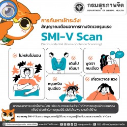 ร่วมสแกนสัญญาณเตือนอาการทางจิตเวชรุนแรง (SMI-V Scan) เพราะการ "ค้นพบไว" คือหัวใจสำคัญของการดูแล กรมสุขภาพจิตขอชวนทุกคนร่วมเป็นหูเป็นตา สังเกตอาการคนใกล้ชิดหรือคนในชุมชน หากพบสัญญาณเตือน SMI-V Scan