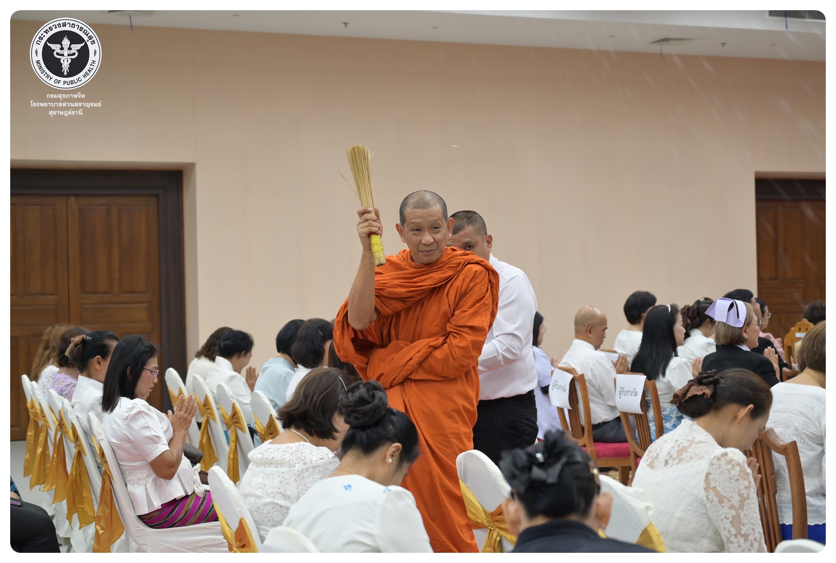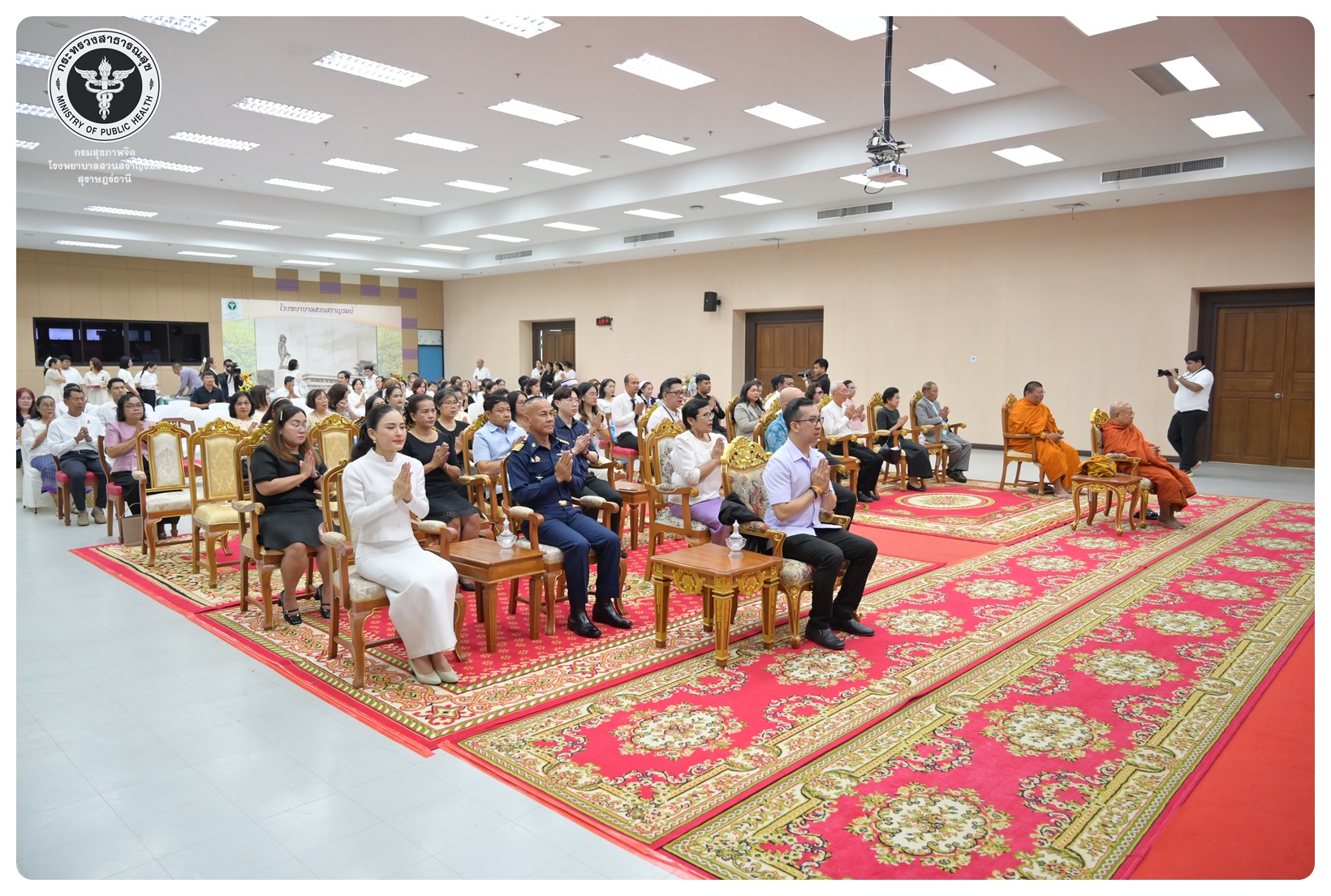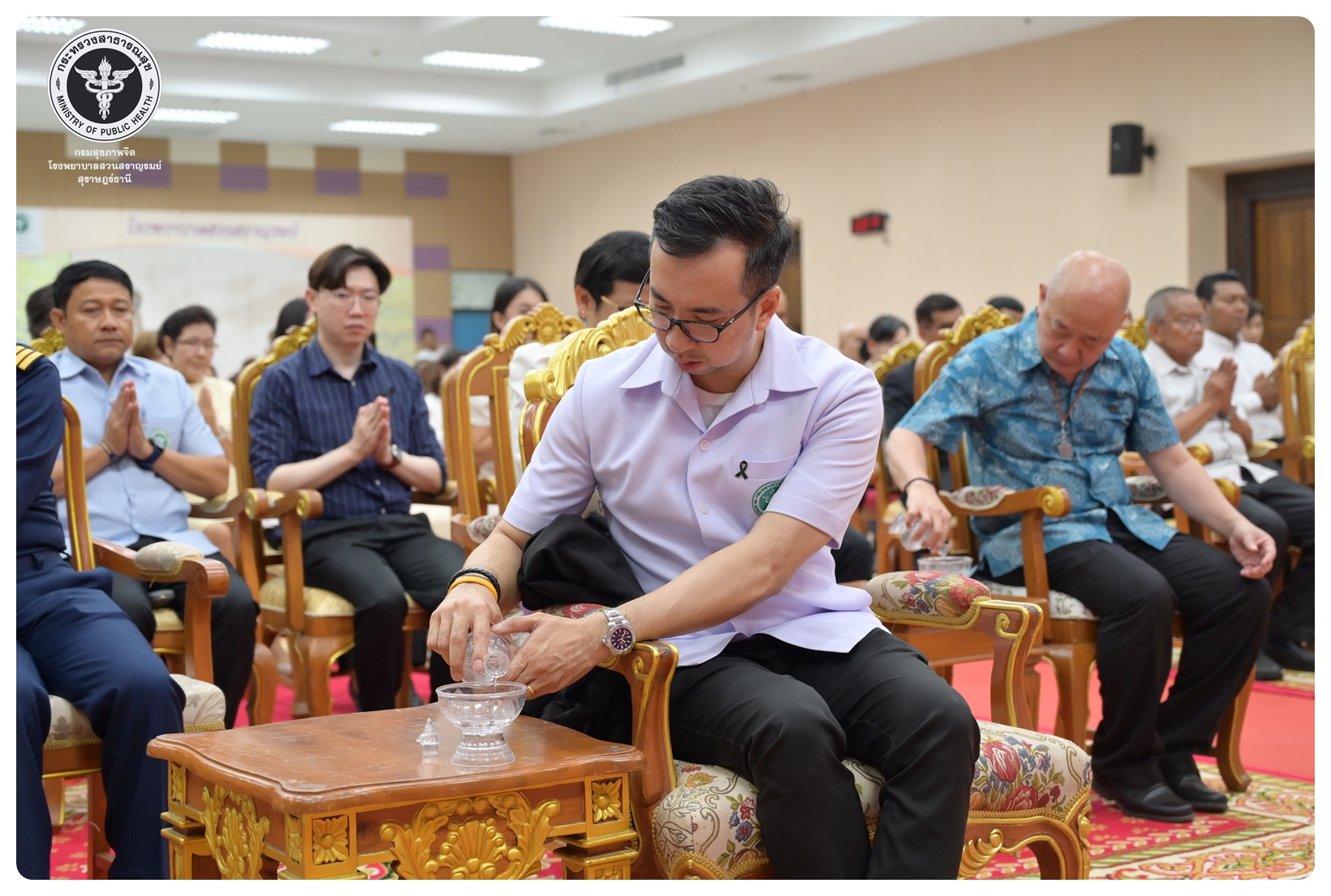 - เวลา ๐๙.๐๐ - ๑๐.๑๕ น. พิธีเจริญพระพุทธมนต์ ณ ห้องประชุมชั้น ๕ อาคารสราญราษฎร์