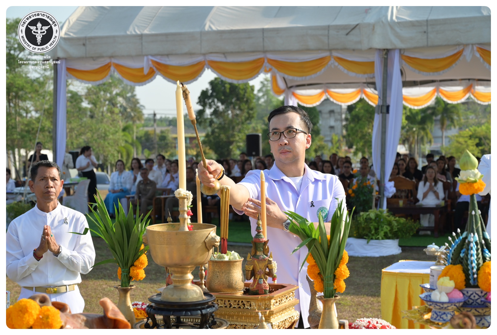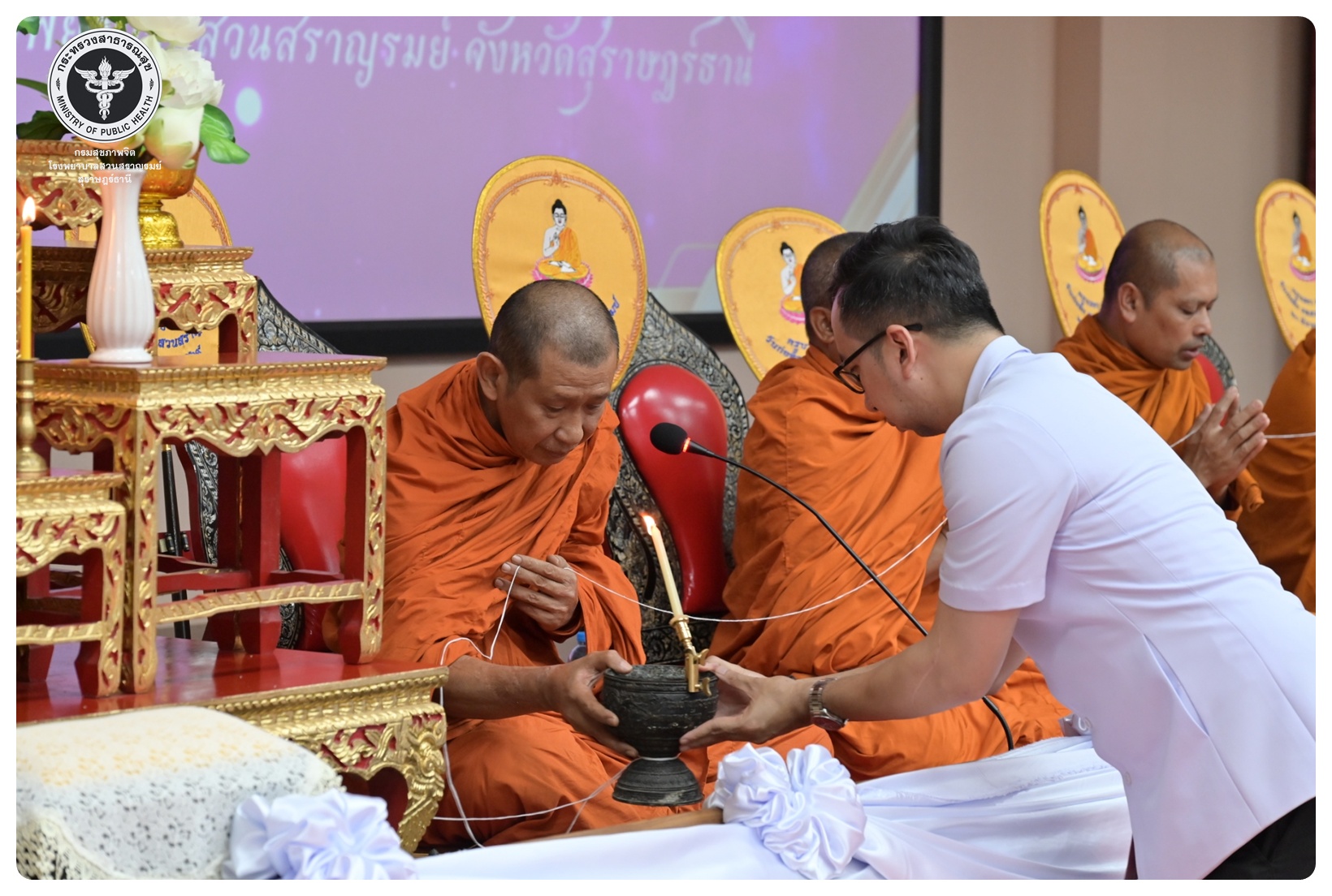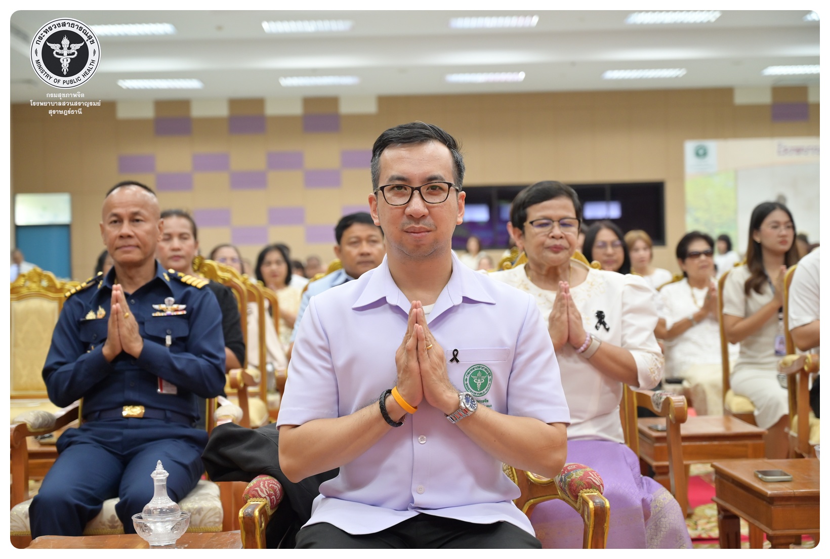 - เวลา ๐๙.๐๐ - ๑๐.๑๕ น. พิธีเจริญพระพุทธมนต์ ณ ห้องประชุมชั้น ๕ อาคารสราญราษฎร์