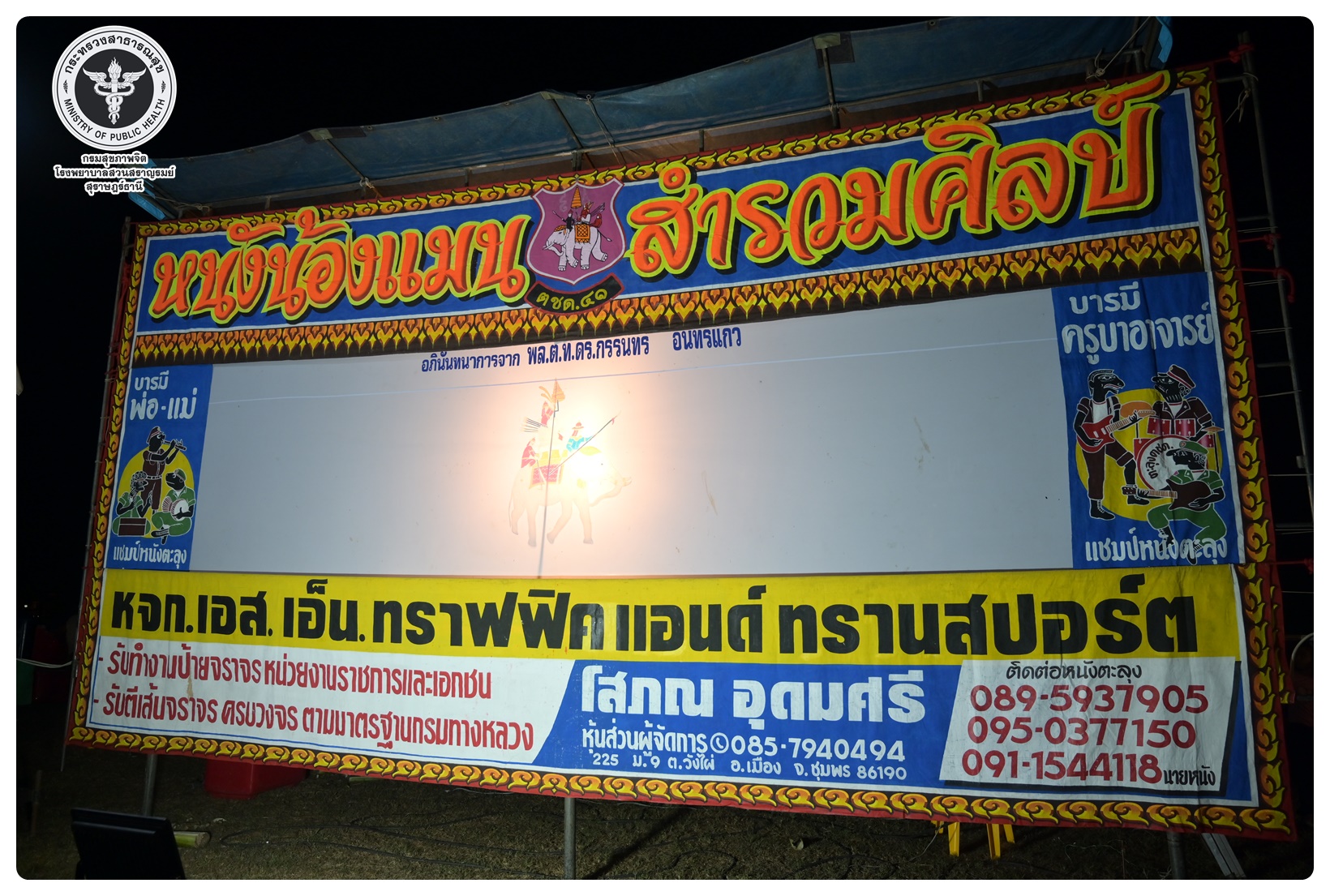 - เวลา ๑๘.๐๐ - ๒๓.๐๐ น. กิจกรรมรับชมมหรสพ “การแสดงหนังตะลุง” ณ บริเวณลานพระบรมราชานุสาวรีย์ รัชกาลที่ ๖ โรงพยาบาลสวนสราญรมย์ อำเภอพุนพิน จังหวัดสุราษฎร์ธานี